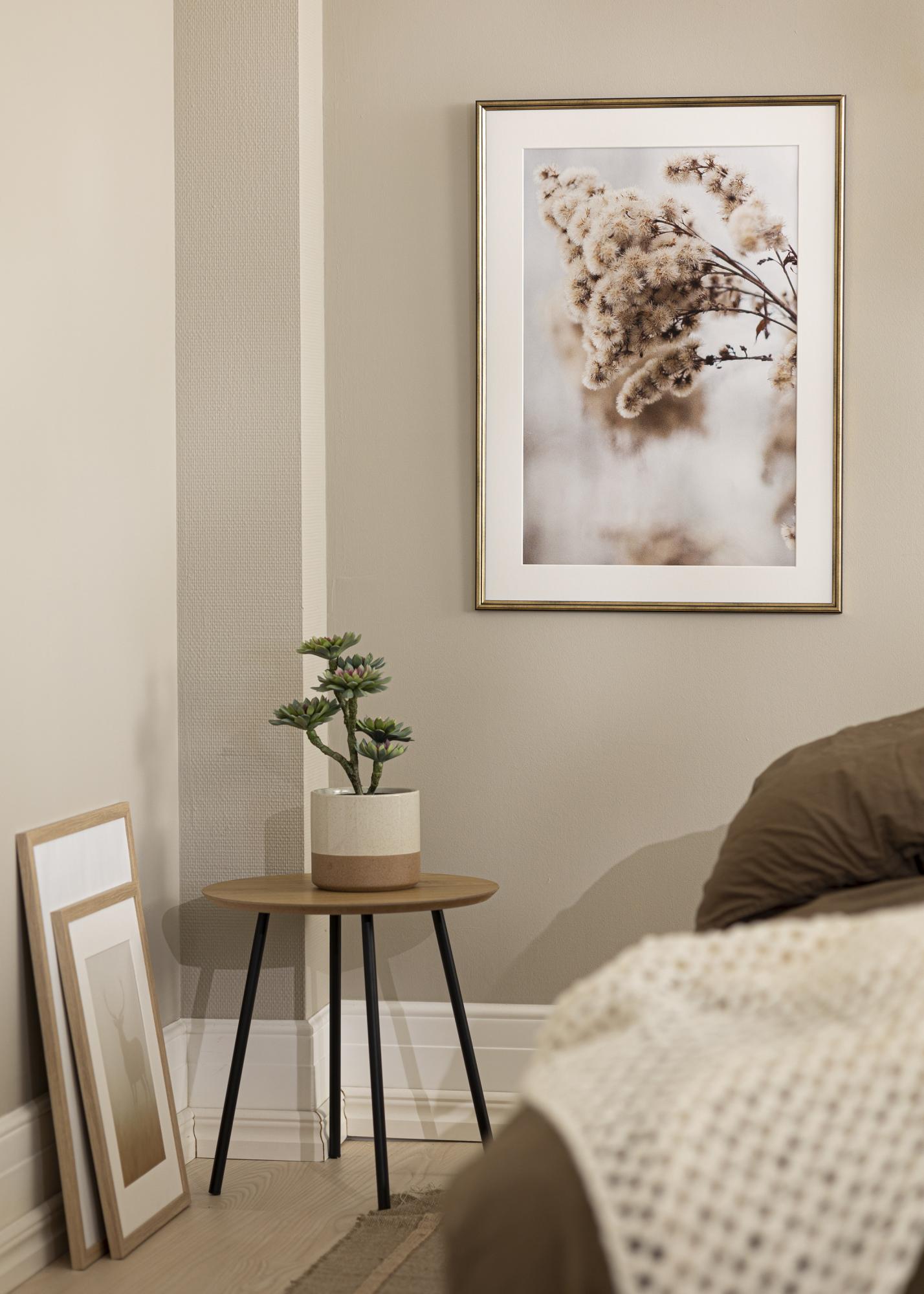 Geef je favoriete foto's een luxe en retro-geïnspireerd fotokader dat een zilveren randje aan je huis geeft. Horndal is een kader van Zweedse makelij en heeft een zwarte gespikkelde gouden kleur met een matte oppervlakte afwerking. De zwart gespikkelde kleur geeft het kader een bescheiden uiterlijk dat je afbeeldingen benadrukt. Het frame is gemaakt van geschilderd ayoushout en heeft een smalle en elegante breedte van slechts 15 mm.