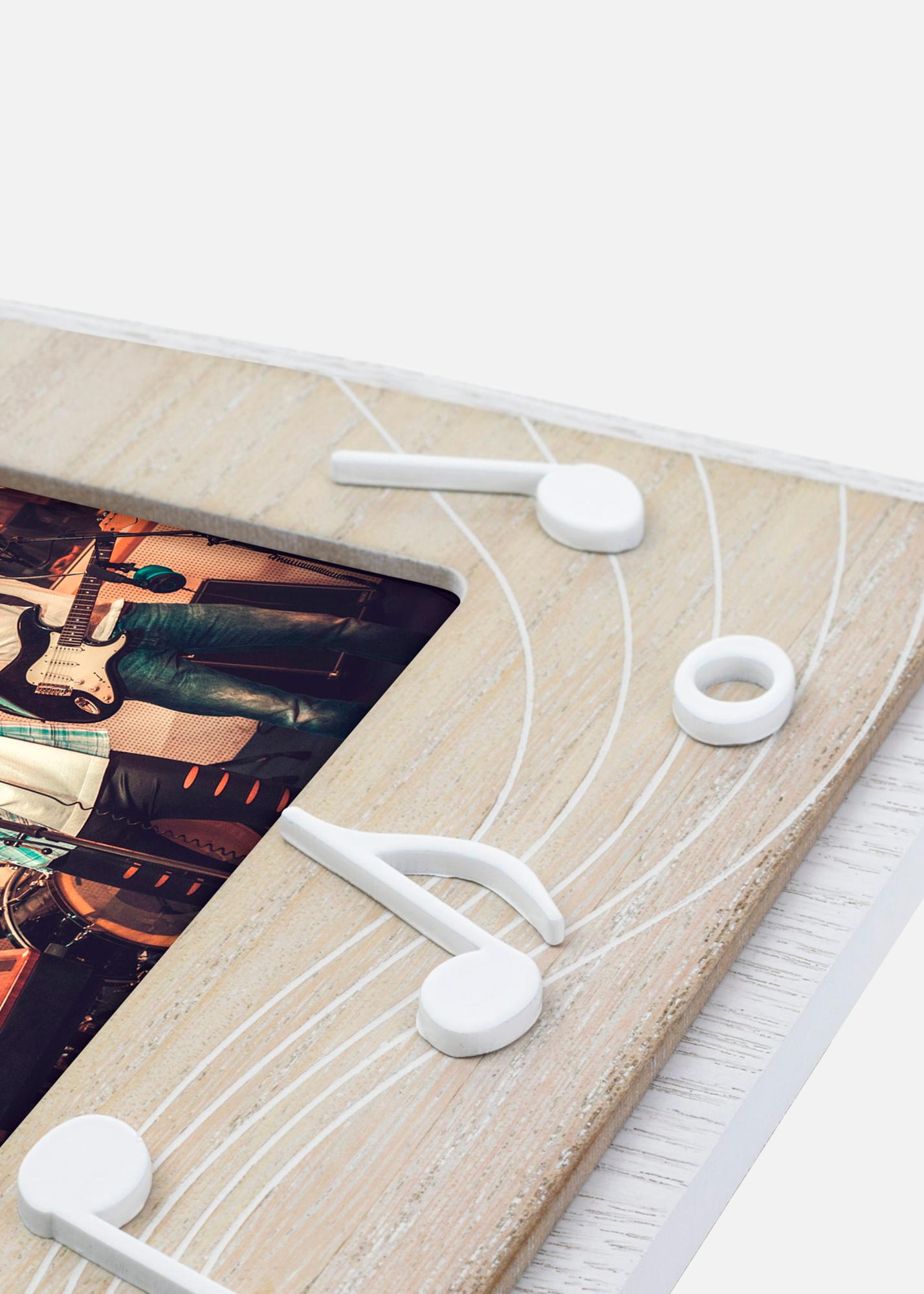 Met de afmetingen 10 x 15 cm past deze kader perfect om standaardfoto's en kan hij gemakkelijk deel uitmaken van jouw fotocollage aan de muur of als op zichzelf staand accent op jouw bureau. Het kenmerkende muziekthema maakt het een ideaal cadeau voor alle muziekliefhebbers en voegt een extra laag betekenis toe aan de momenten die zijn vastgelegd op beeld.