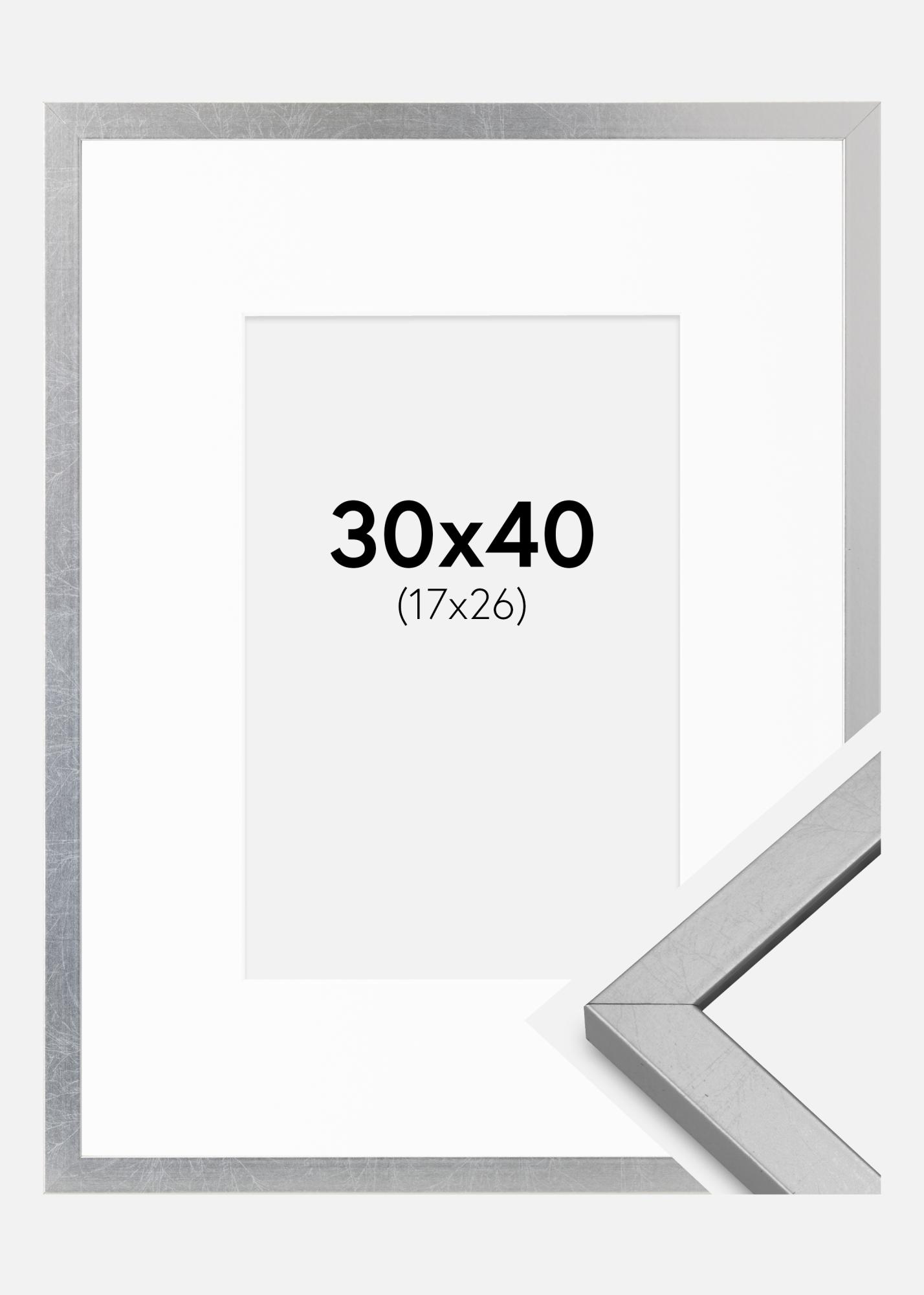 Fotokader Minerva Zilver 30x40 cm - Passe-partout Wit 18x27 cm