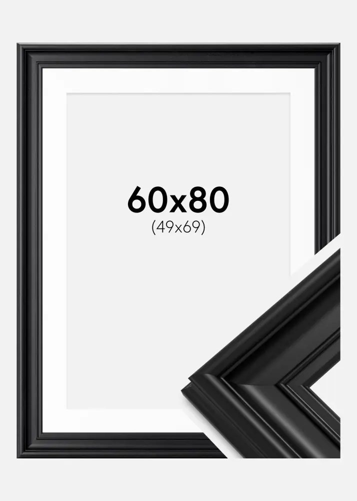 Kader Mora Premium Zwart 60x80 cm - Passe-partout Wit 50x70 cm