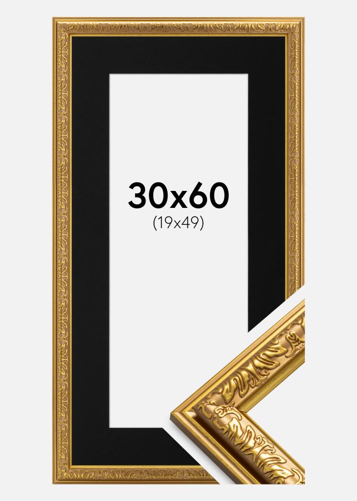 Kader Nostalgia Goud 30x60 cm - Passe-partout Zwart 20x50 cm