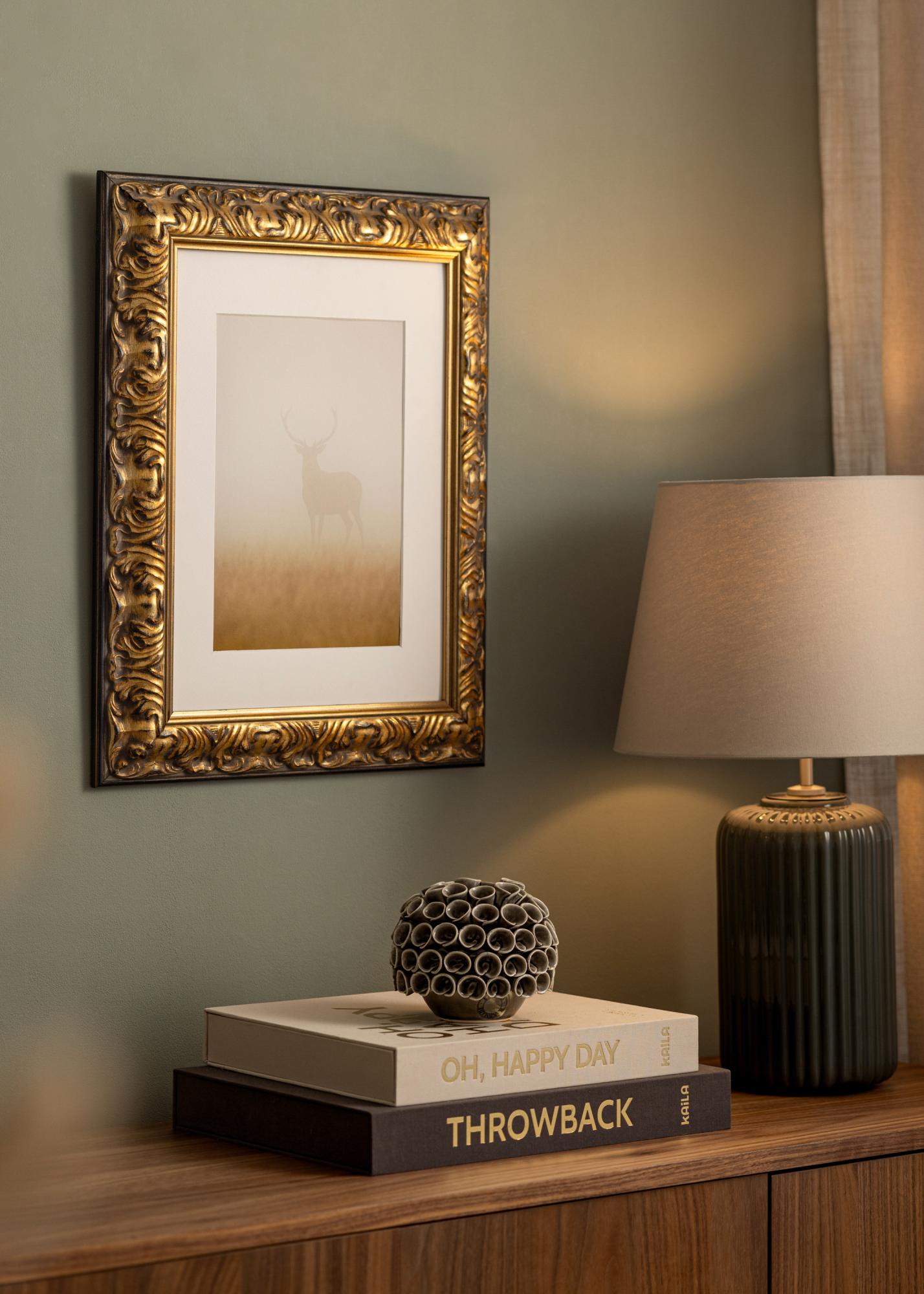 Onze op maat gemaakte Kader Odin in goud en zwart is de perfecte keuze voor wie op zoek is naar een elegante en klassieke omlijsting. Met zijn goudkleurige afwerking en zwarte accenten biedt Dit fotokader een antieke uitstraling die elk kunstwerk of foto versterkt. Het sierlijke ontwerp creëert een prachtige contrast tussen het warme goud en de diepe zwarte details, wat een stijlvolle en traditionele look geeft.
