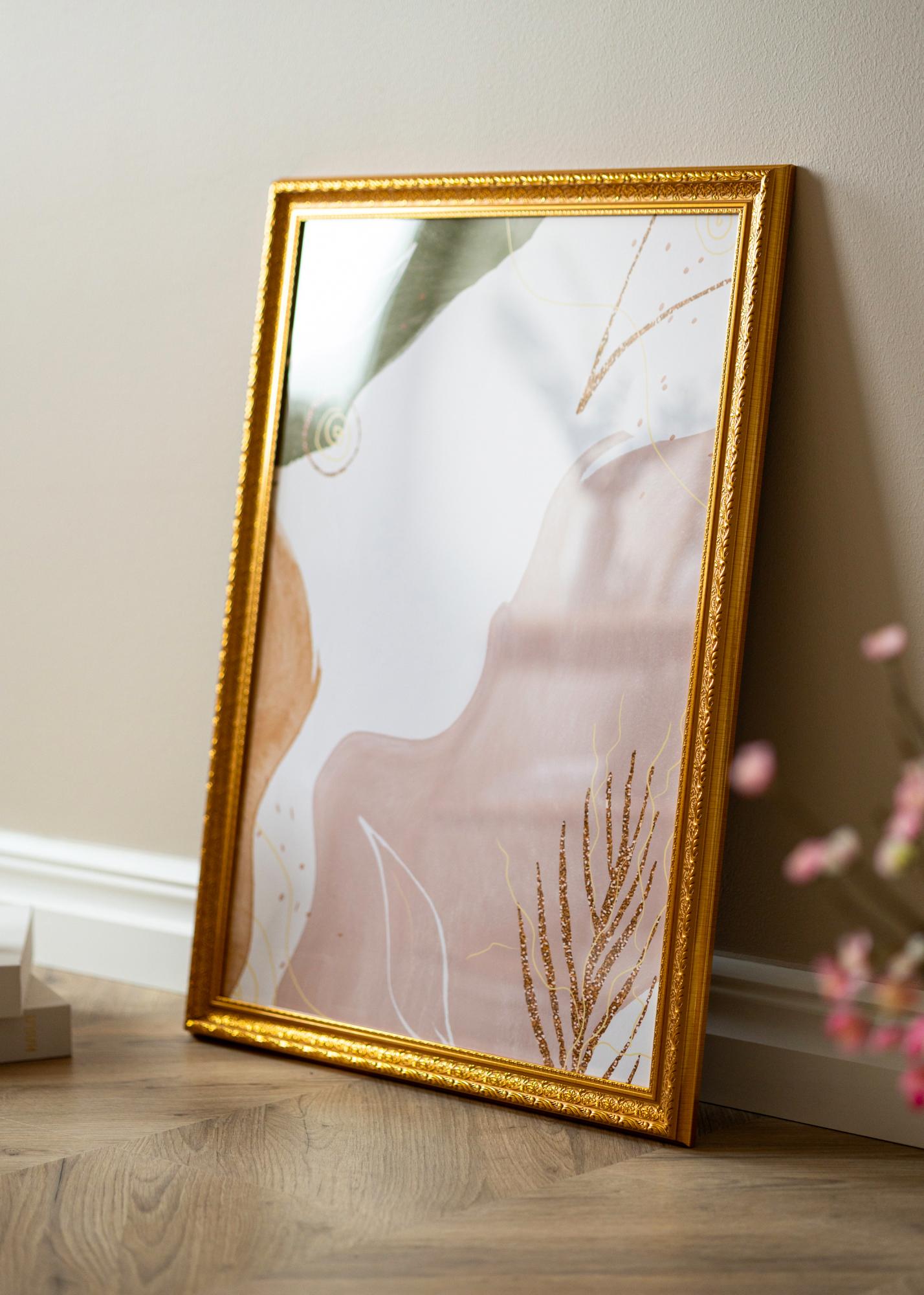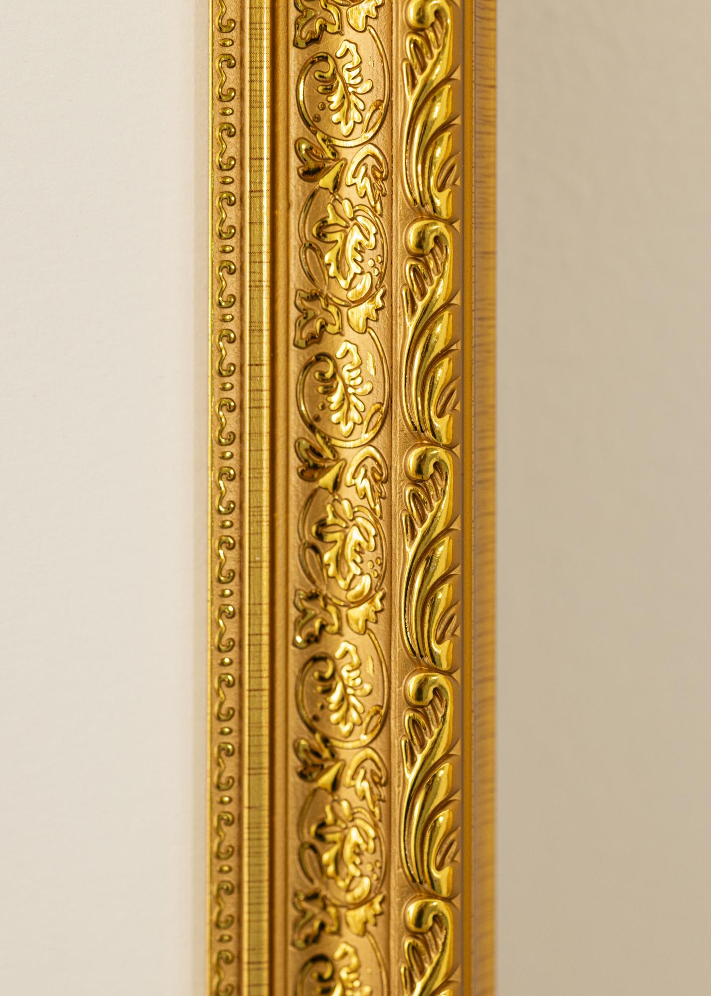 Transformeer je muren met een fotokader die elegantie en stijl uitstraalt. Dit goudkleurige schilderijkader is perfect om kunstwerken, foto's of diploma's te accentueren. Met een formaat van 70x100 cm biedt het voldoende ruimte voor je favoriete thema's. Het klassieke ontwerp met prachtige ornamenten en gedetailleerd profiel geeft een luxueus gevoel dat nooit uit de mode raakt.