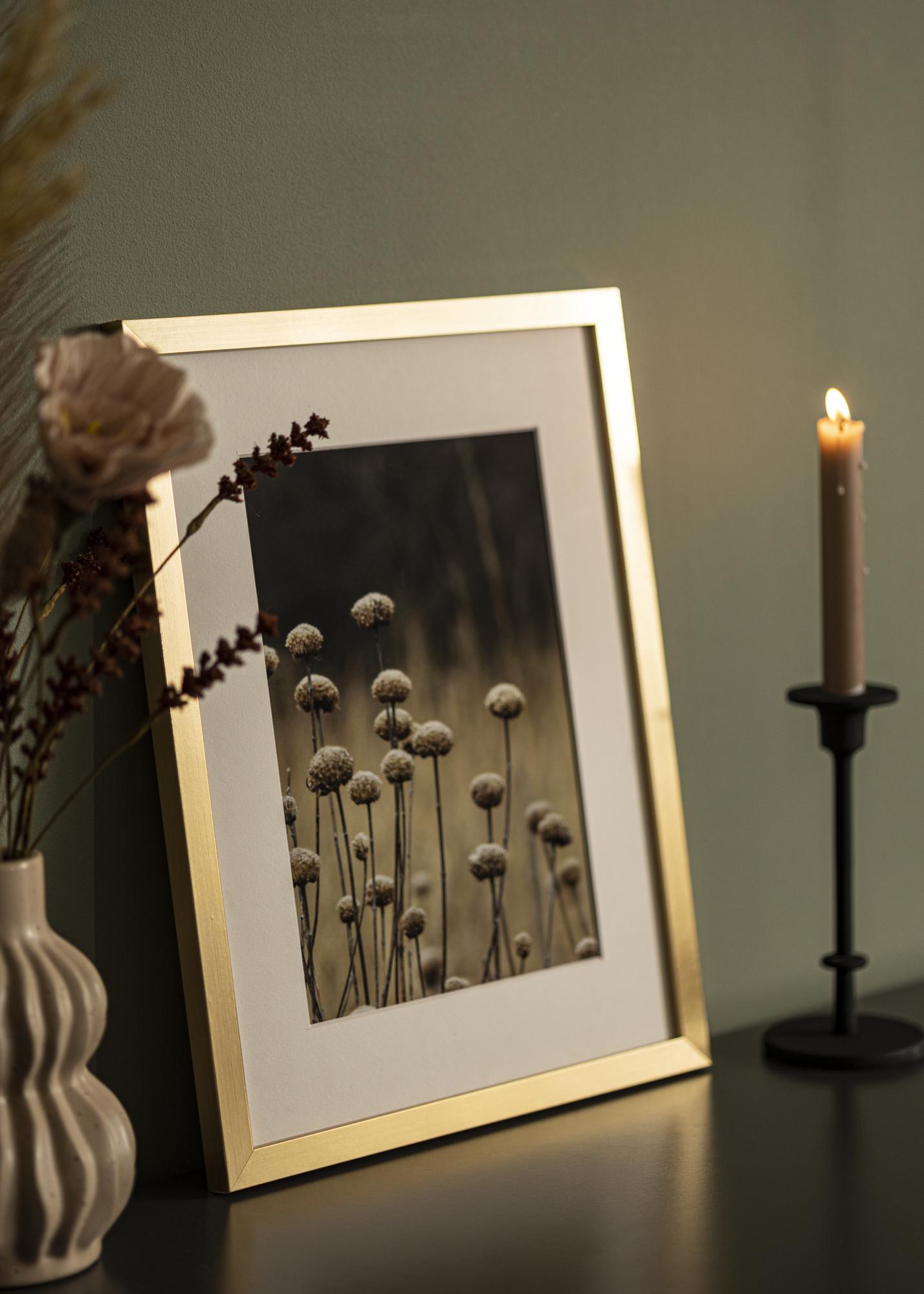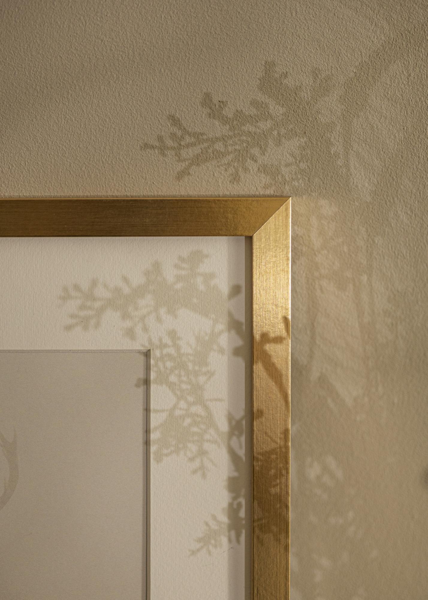 Met dit kader in glanzend goud stralen je schilderijen nog meer luxe uit. De gouden kleur tilt zowel kleurrijke als zwart-wit afbeeldingen op - en als je andere goudkleurige elementen in je interieur hebt, is dit kader een prachtige aanvulling!