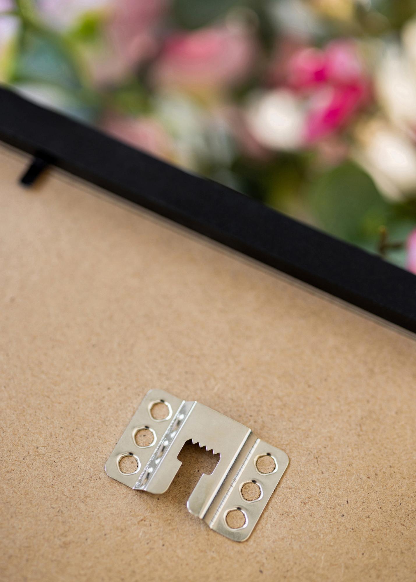 Het kader kan zowel verticaal als horizontaal aan de muur bevestigd worden, waardoor je flexibel bent in de keuze van je motieven. Door de kleine buigbare clips aan de achterkant omhoog te buigen, kan de achterkant los gemaakt worden en kan de afbeelding eenvoudig in het frame geplaatst worden.