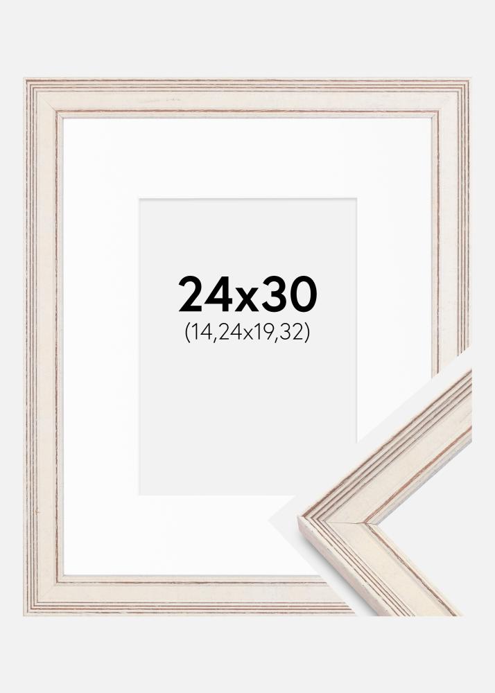 Pakket met een kader en bijpassend wit passe-partout. In de productafbeelding staan de maten van het kader (vetgedrukt) en de binnenmaten van het passe-partout (aangegeven tussen haakjes). Let op; de binnenmaat van het passe-partout dient altijd 1 cm kleiner te zijn dan de afmetingen van de gewenste afbeelding.
