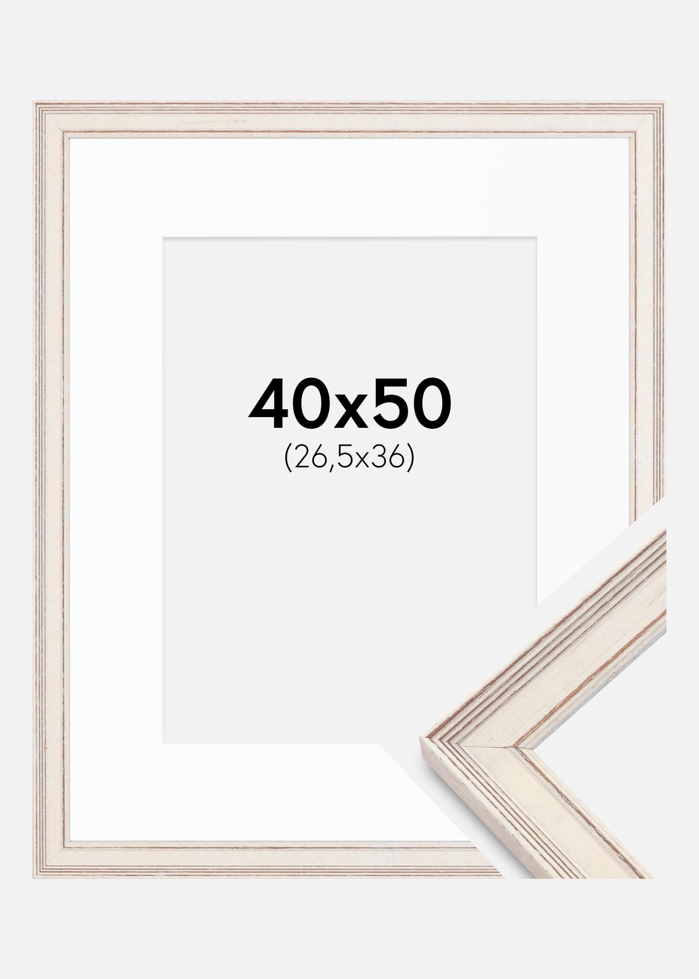 Kader Shabby Chic Wit 40x50 cm - Passe-partout Wit 27,5x37 cm