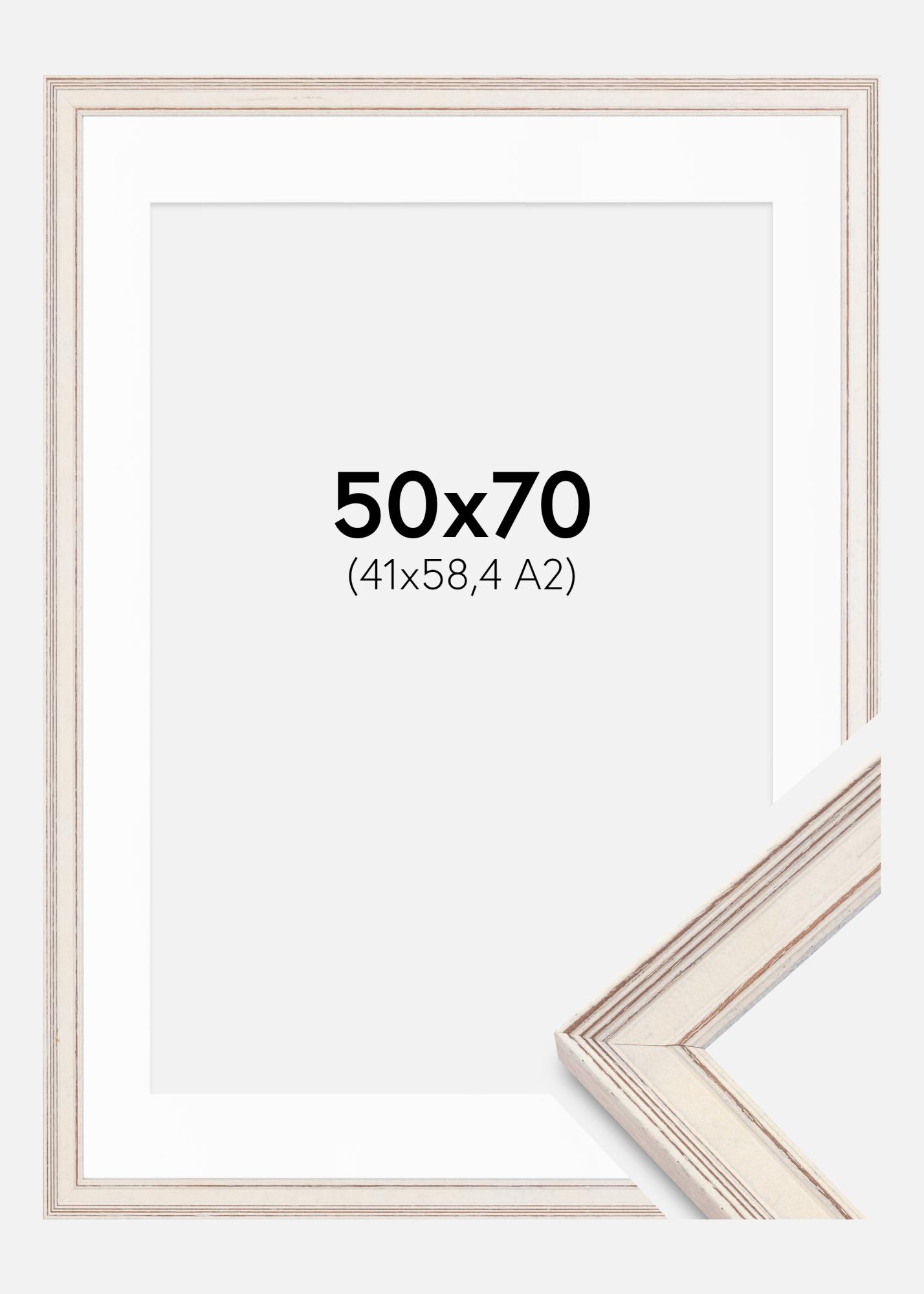 Kader Shabby Chic Wit 50x70 cm - Passe-partout Wit 42x59,4 cm (A2)