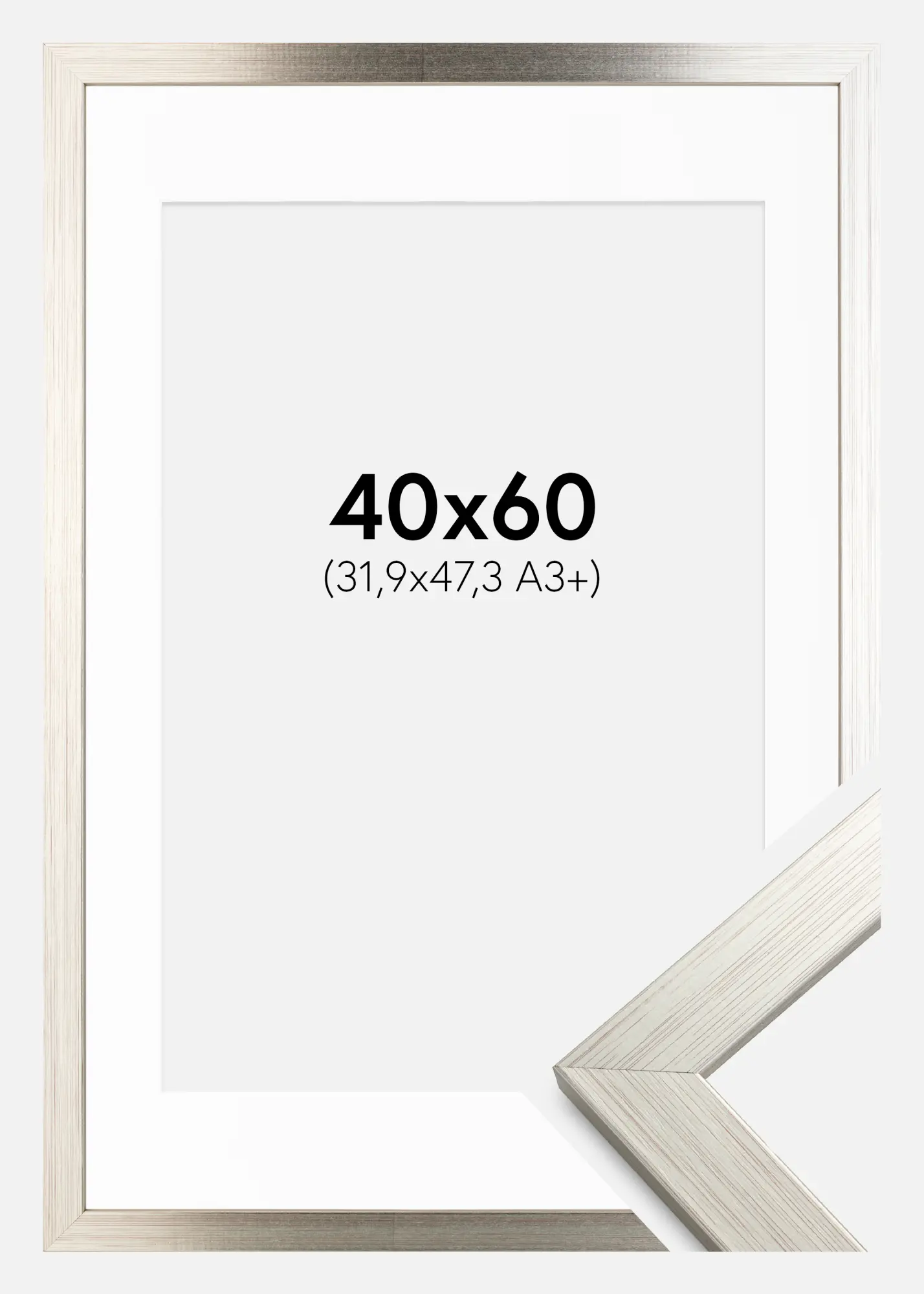 Kader Silver Wood 40x60 cm - Passe-partout Wit 32,9x48,3 cm (A3+)