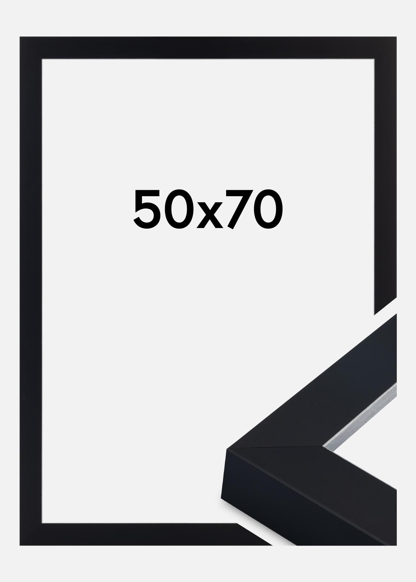 Deze kader is perfect om je favoriete afbeeldingen in het formaat 50x70 cm te laten opvallen. Met een modern en strak design biedt hij een gladde, glanzende Zwart oppervlak dat elegant wordt omlijst door een subtiele zilverkleurige rand. Het smalle profiel zorgt voor een minimalistische en grafische uitstraling, waardoor de afbeelding centraal staat.