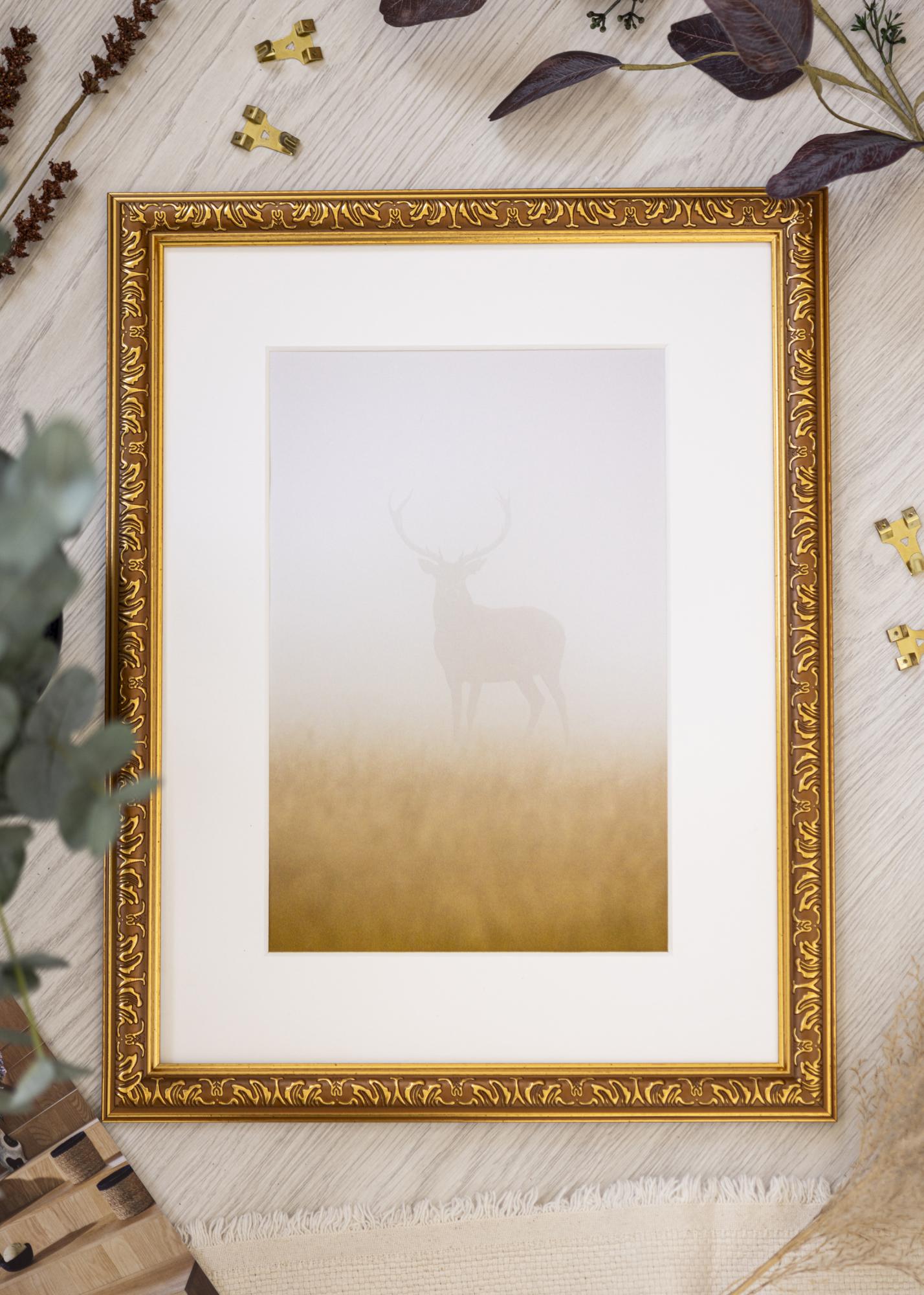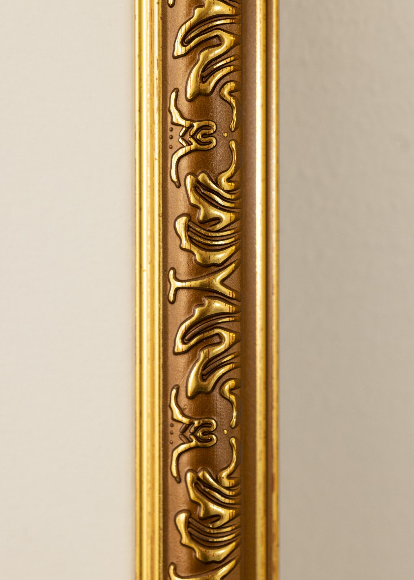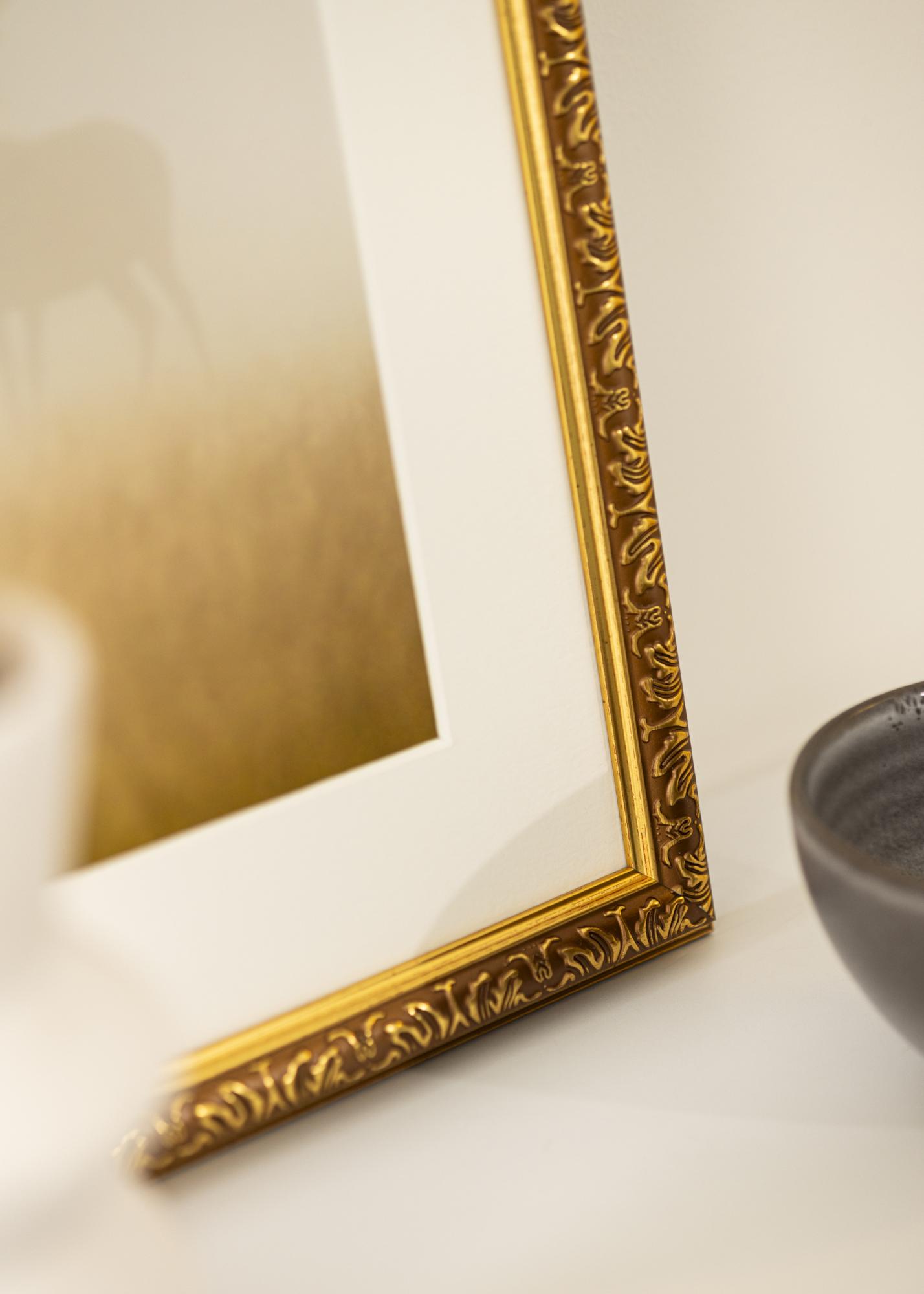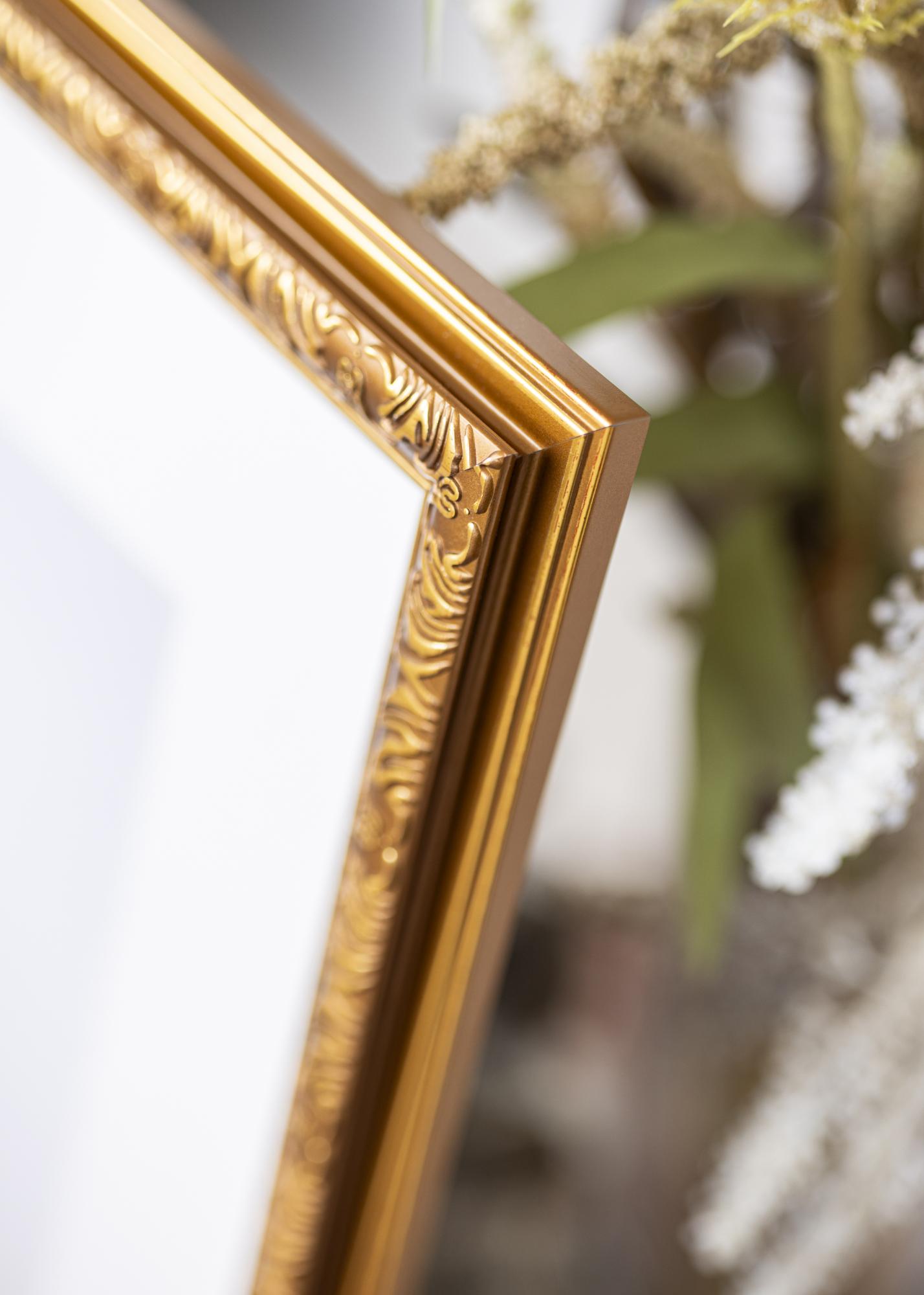 De luxueuze goudkleurige afwerking samen met de decoratieve, versierde details langs de binnenrand creëren een tijdloze en traditionele sfeer. Dit maakt de kader tot een perfecte keuze voor zowel klassieke als elegante interieurstijlen. Of u nu een vleugje glamour aan uw woning wilt geven of een reeds stijlvolle omgeving wilt aanvullen, Dit fotokader zal een blikvanger worden.