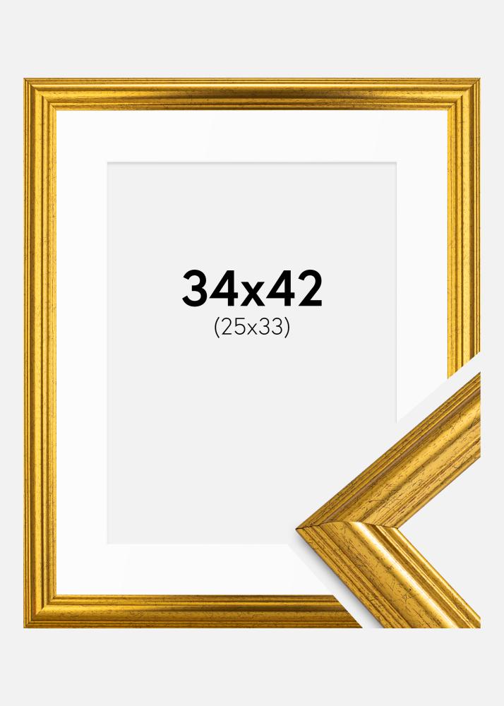 Transformeer je foto's in kunstwerken met onze elegante kader in goud, compleet met een witte passe-partout. Dit kader is ontworpen voor foto's van de grootte 26x34 cm en biedt een verfijnde omlijsting die het onderwerp op een stijlvolle manier naar voren brengt.