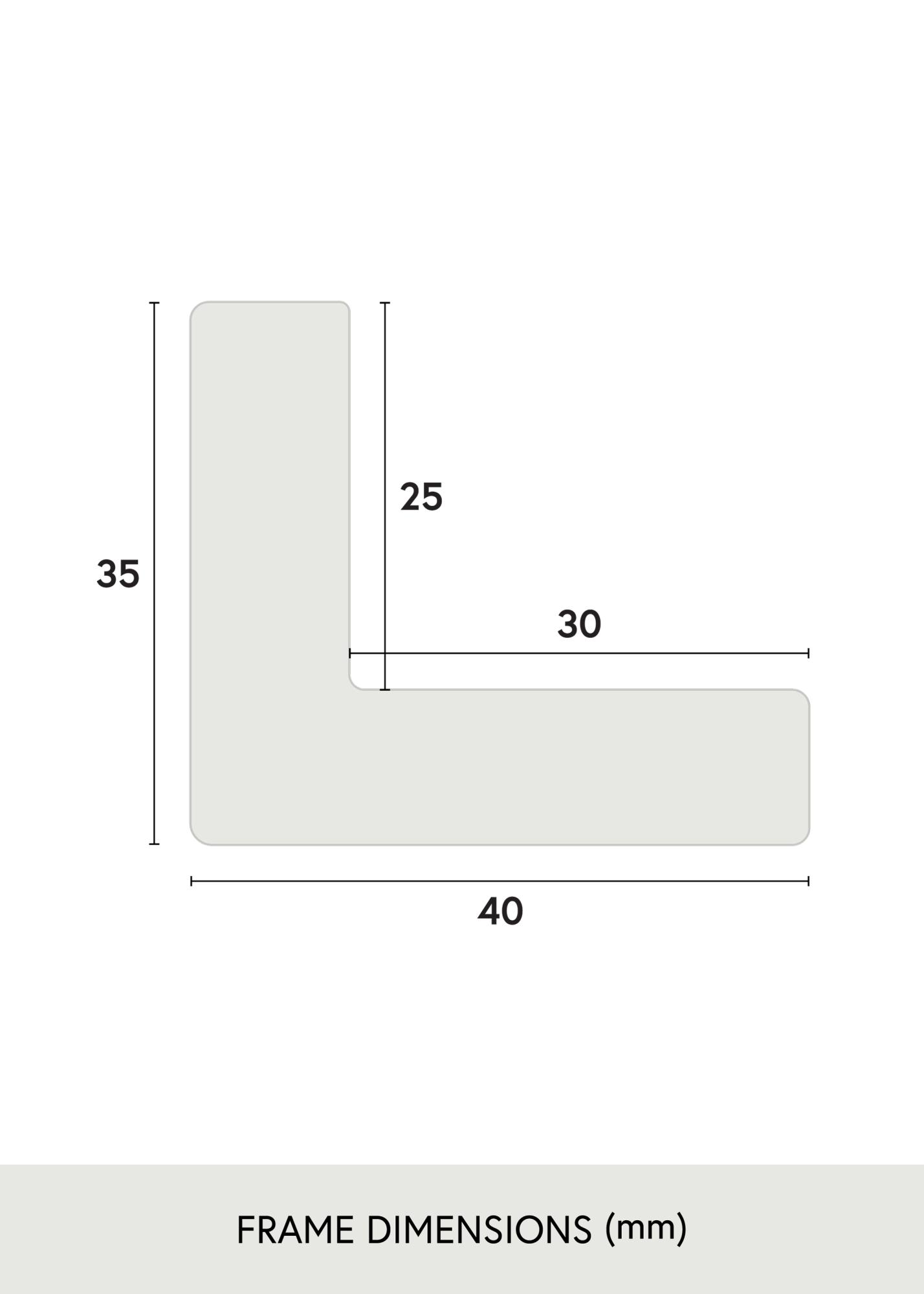 De kader heeft een lijstbreedte van 40 mm en een diepte van 35 mm, wat zorgt voor een stabiele en robuuste indruk. Hij is gemaakt van hout en voorzien van metalen hangers aan de achterkant, zodat je hem eenvoudig zowel horizontaal als verticaal kunt ophangen. Dit geeft je flexibiliteit in hoe je je afbeeldingen wilt presenteren.