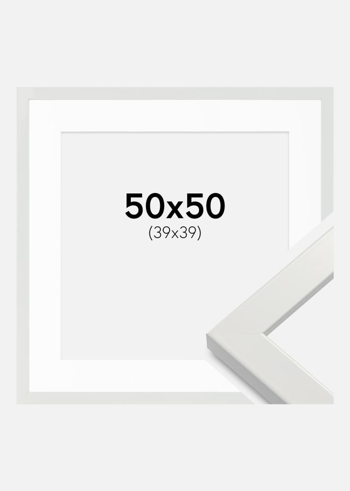 Kader White Wood Glossy 50x50 cm - Passe-partout Wit 40x40 cm