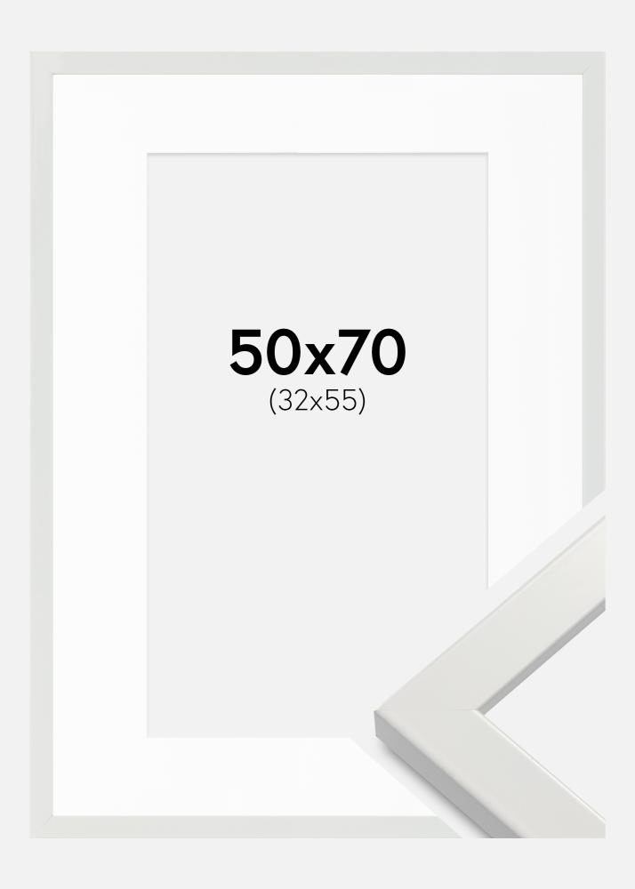 Kader White Wood Glossy 50x70 cm - Passe-partout Wit 33x56 cm