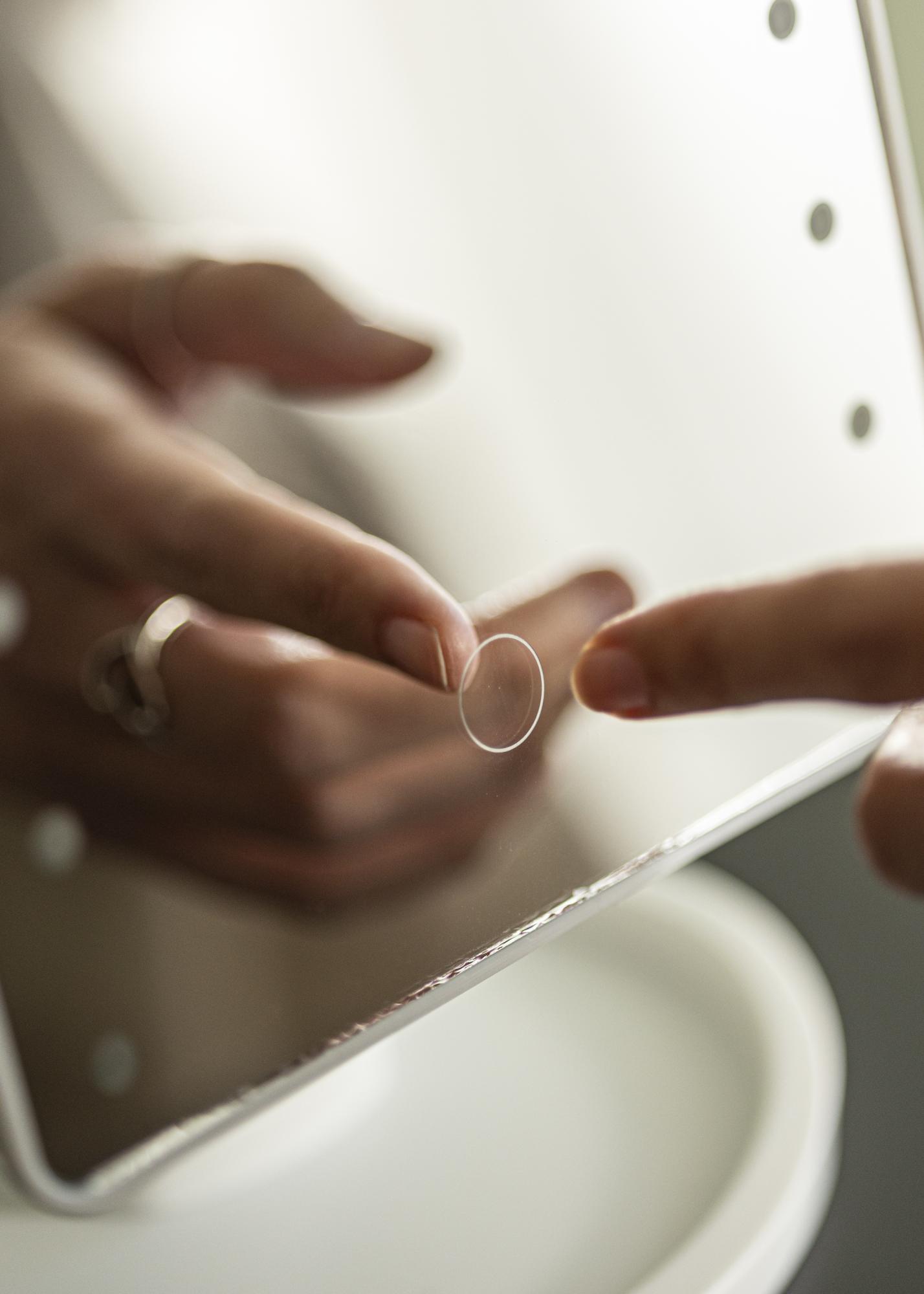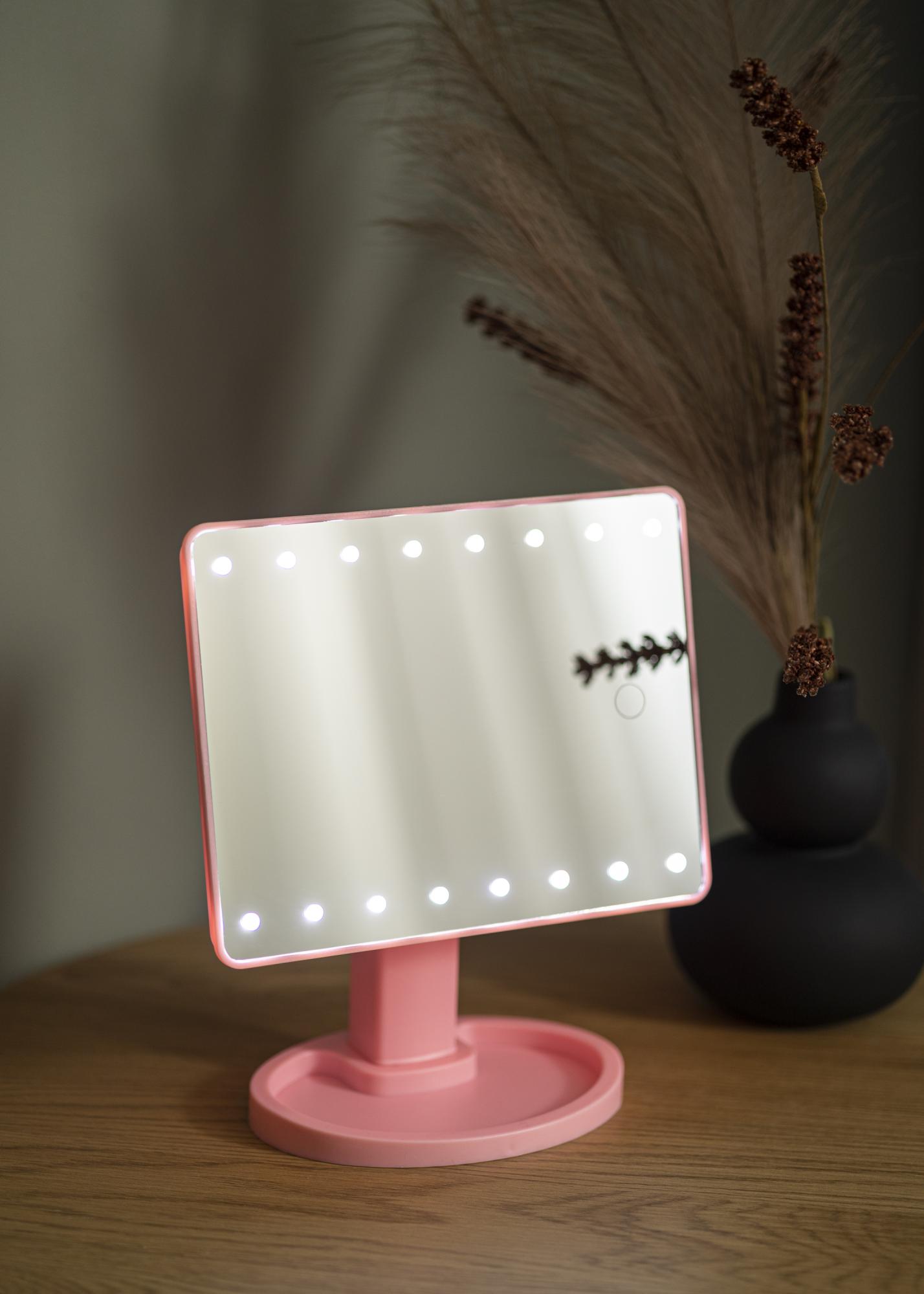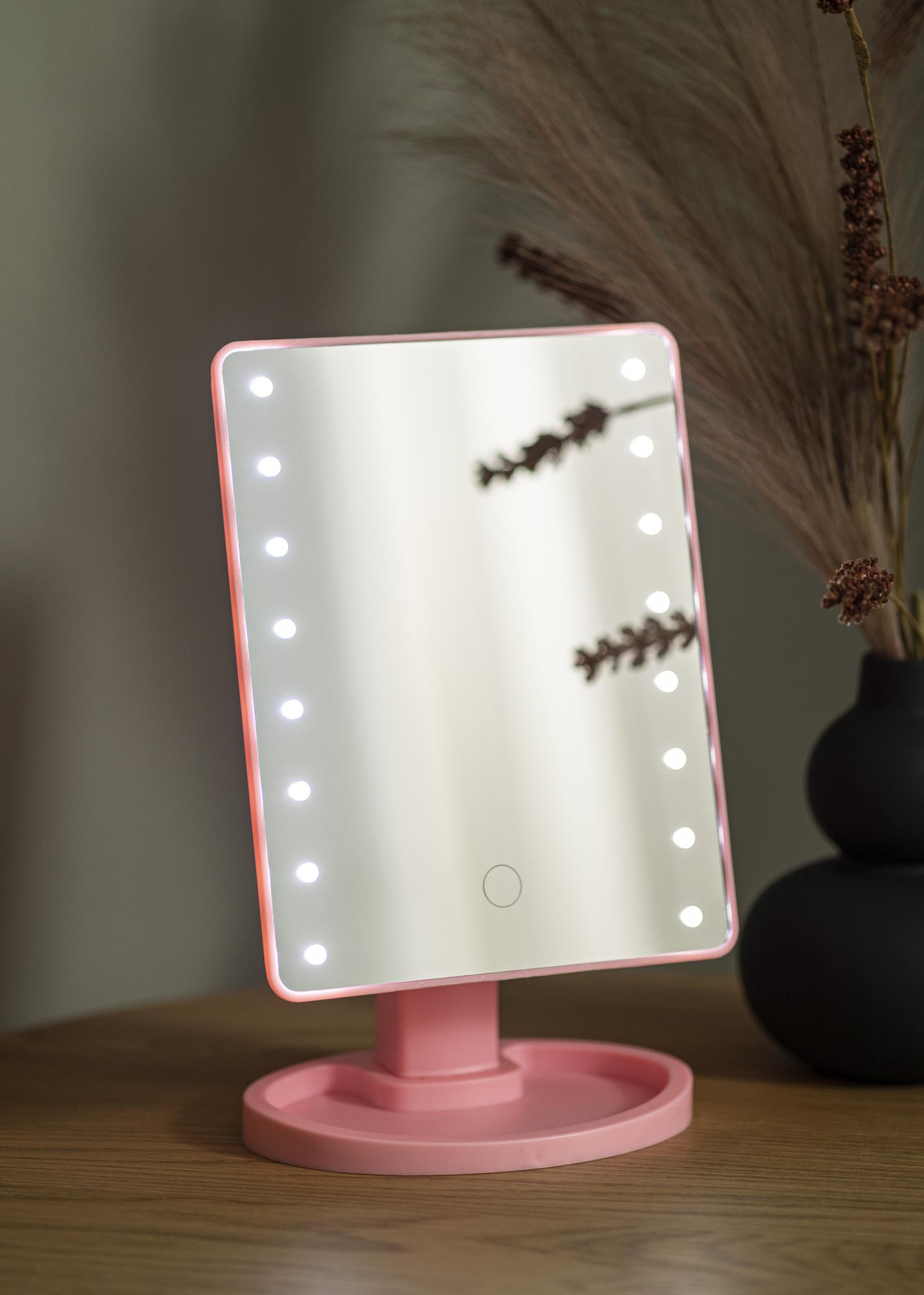 Deze make-up spiegel is een goede keuze voor wie op zoek is naar een kleinere spiegel in een stijlvol ontwerp. De roze kleur vormt een mooie kleuraccent, terwijl de geïntegreerde LED-verlichting zorgt voor een uniform, koel wit licht bij het reflecteren. De verlichting kan aangezet worden met de aan/uit-knop aan de achterkant van de spiegel. Je kunt de verlichting eenvoudig dimmen door de touch-knop aan de voorzijde een paar seconden ingedrukt te houden.