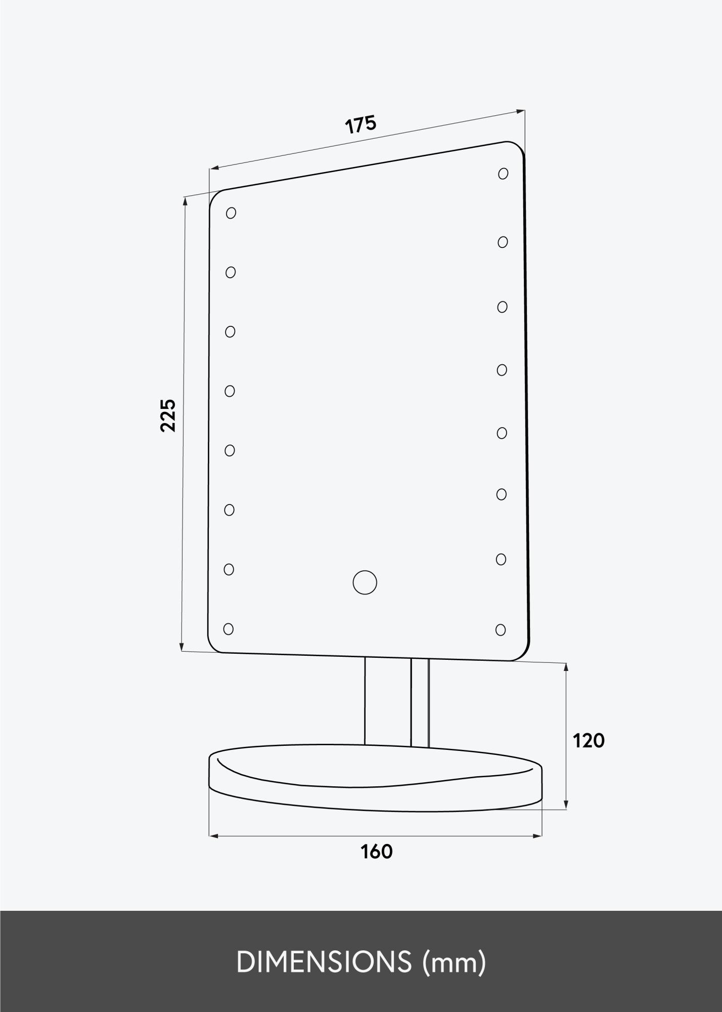 Compact formaat make-up spiegel met een buitenmaat van 17,5x37,5 cm