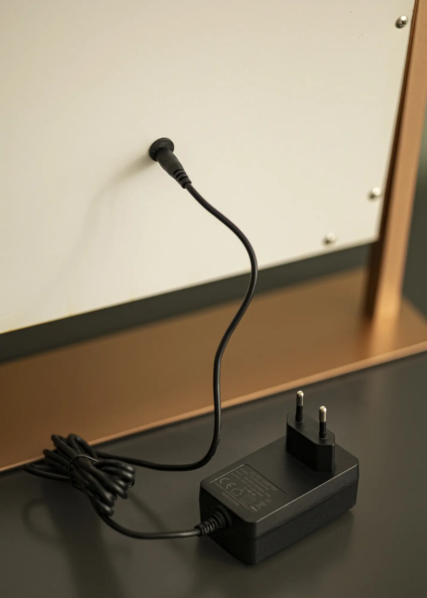 Deze make-up spiegel kun je staand neer zetten in je make-up hoek, in je woonkamer of in elke andere kamer waar je een stijlvolle spiegel wilt hebben. De staande spiegel is zo ontworpen dat je deze kunt kantelen naar wens. Elektrische verbinding wordt gemaakt door middel van een stekker.