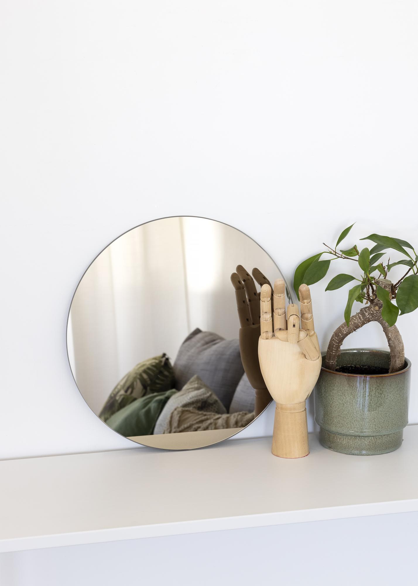 Deze ronde spiegel heeft een dun design zonder lijst, waardoor hij een elegante en exclusieve uitstraling krijgt die elke kamer een boost geeft. Met spiegelglas in een bronskleurige tint heeft de wandspiegel een krachtige en sfeervolle uitstraling die perfect is voor in een moderne woning. De spiegel maakt onderdeel uit van een serie ronde, bronskleurige spiegels van KAILA, en je kunt kiezen uit zeven verschillende afmetingen om de spiegel te vinden die het beste is voor bij jou thuis. Dit model heeft een diameter van 30 cm. Je kunt de spiegel makkelijk ophangen in de hal of woonkamer met behulp van de wandbevestiging.