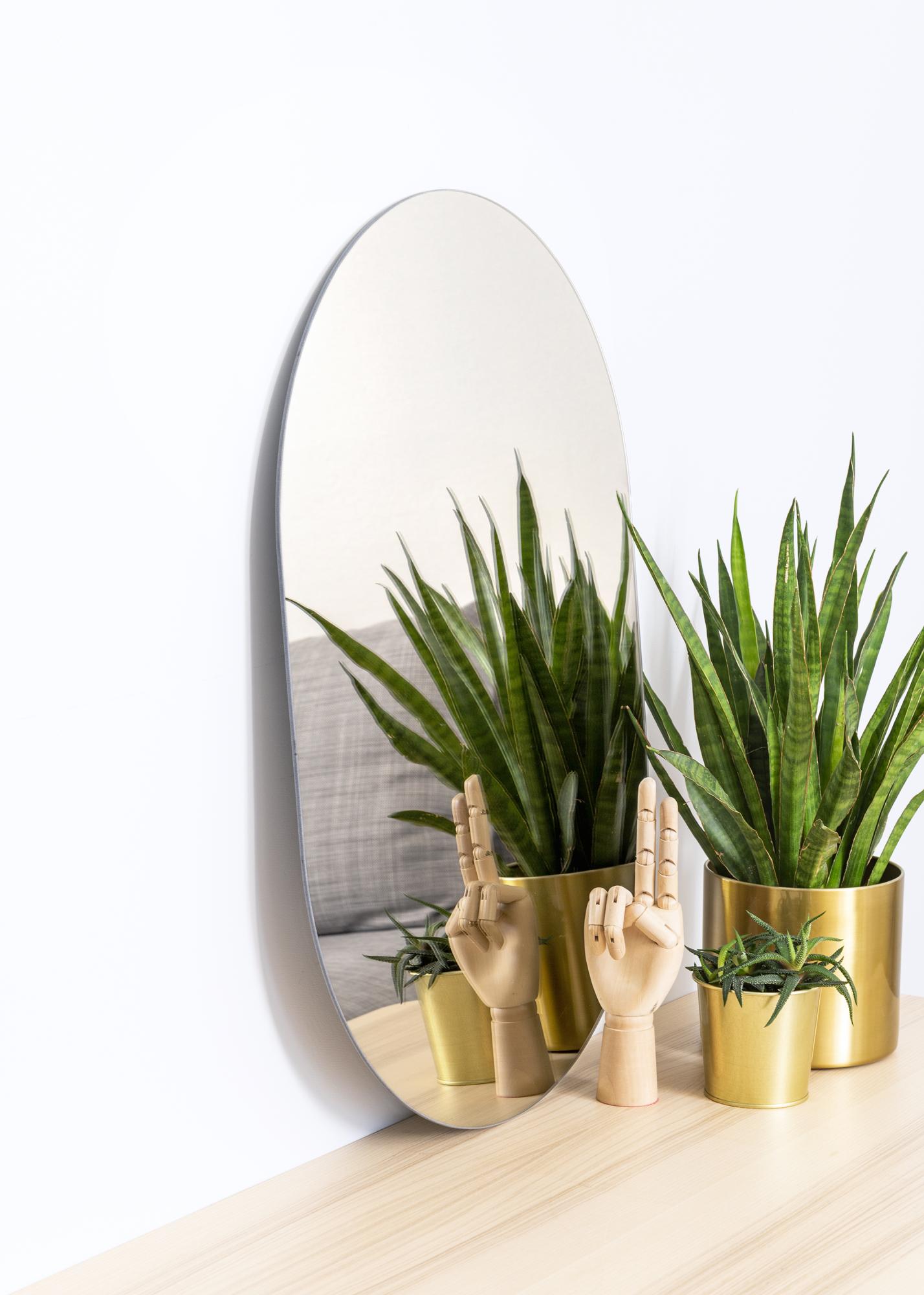 Met een ovale spiegel als deze creëer je een zachte en uitnodigende sfeer in huis. Deze spiegel is slechts 4 mm dun, wat in combinatie met de zachte vorm resulteert in een zeer elegante wandspiegel. Dit is een spiegel met een design dat net zo modern is als tijdloos, en daarom geschikt is voor zowel trendy als klassieke interieurs.