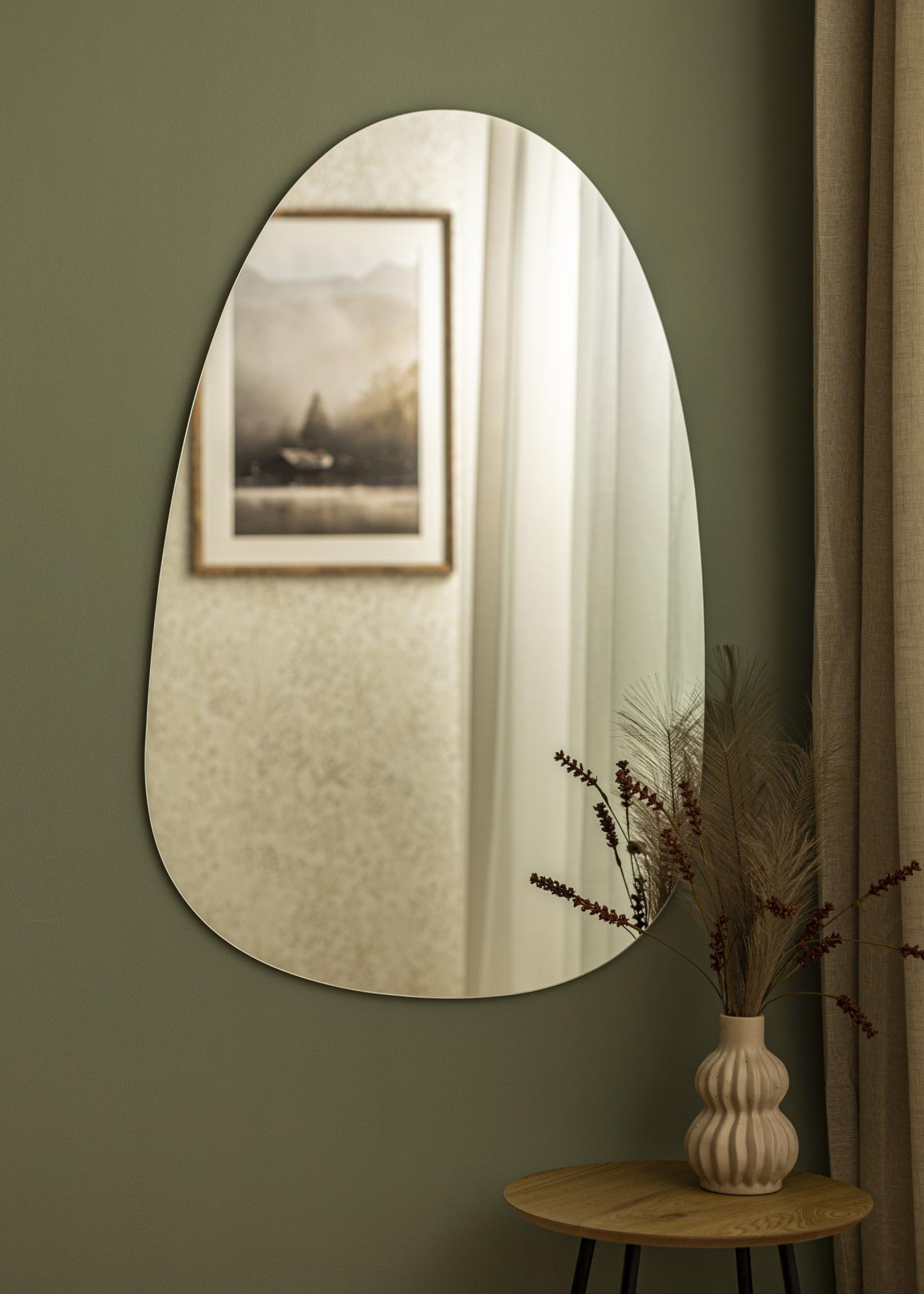Met deze spiegel krijg je het beste van twee werelden: een trendy en opvallend interieurdetail, dat bovendien erg elegant en stijlvol is. De spiegel heeft een zachte en asymmetrische, ovale vorm die aan een ei doet denken. De spiegel is ook erg dun en heeft geen lijst, wat bijdraagt aan de moderne en elegante look.