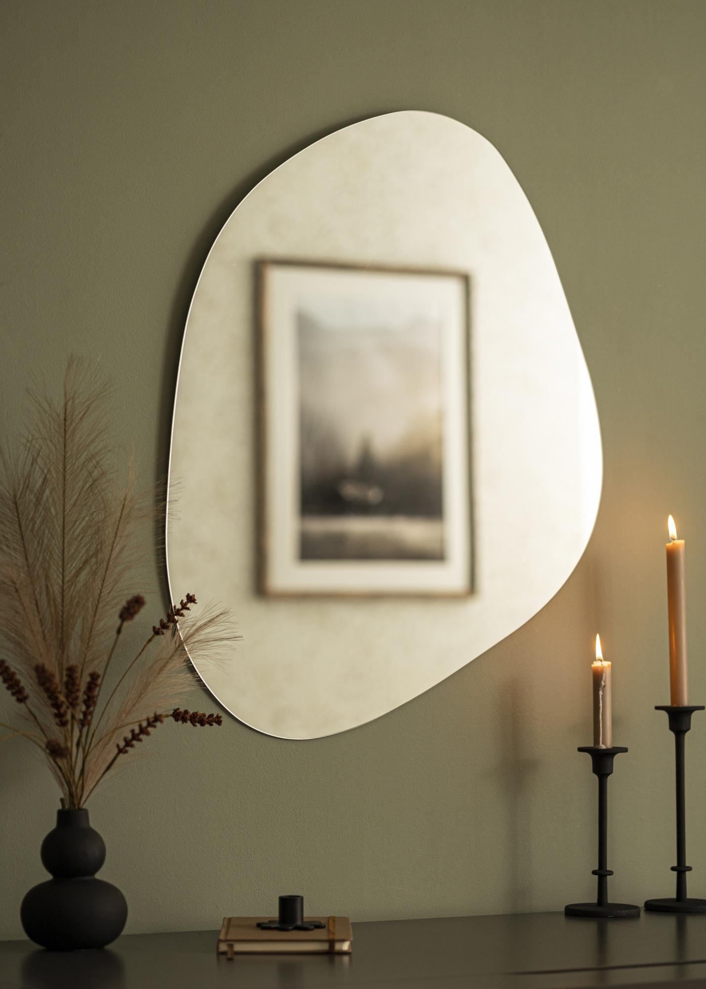 Op zoek naar een stijlvolle wandspiegel voor in huis? Dan is deze spiegel iets voor jou! De spiegel heeft een ontwerp zonder frame, is voorzien van dun spiegelglas van slechts 4 mm en heeft een zachte vorm, die mooi contrasteert met de rechte lijnen van de rest van je interieur.