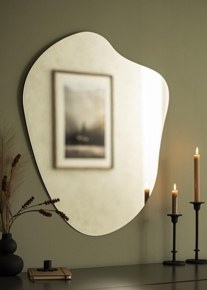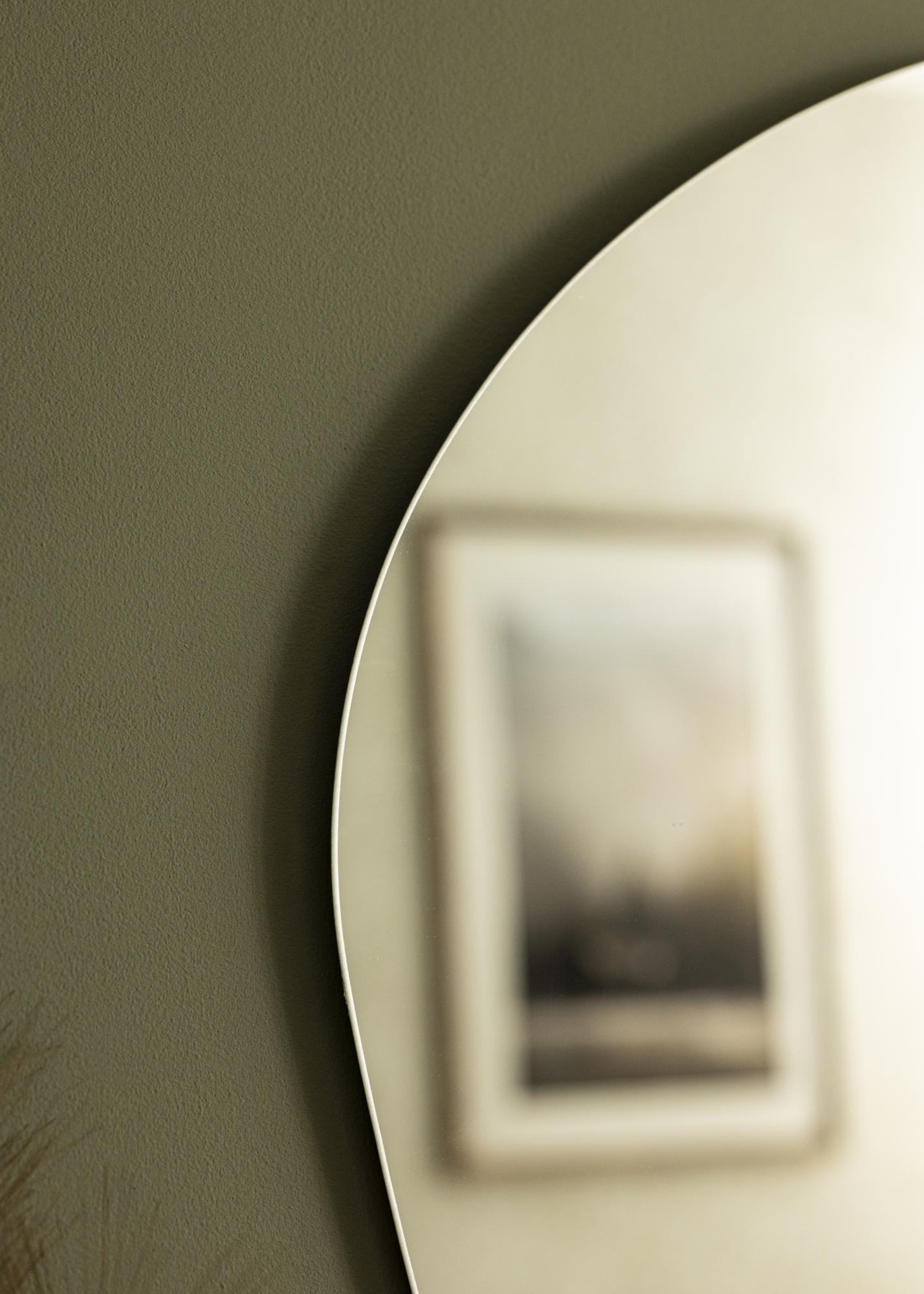 Laat deze trendy wandspiegel een spannend interieurdetail worden dat het licht van ramen en lampen prachtig reflecteert. De unieke vorm en het ontbreken van een frame geven de spiegel zijn karakteristieke uitstraling, die zowel modern als minimalistisch is.