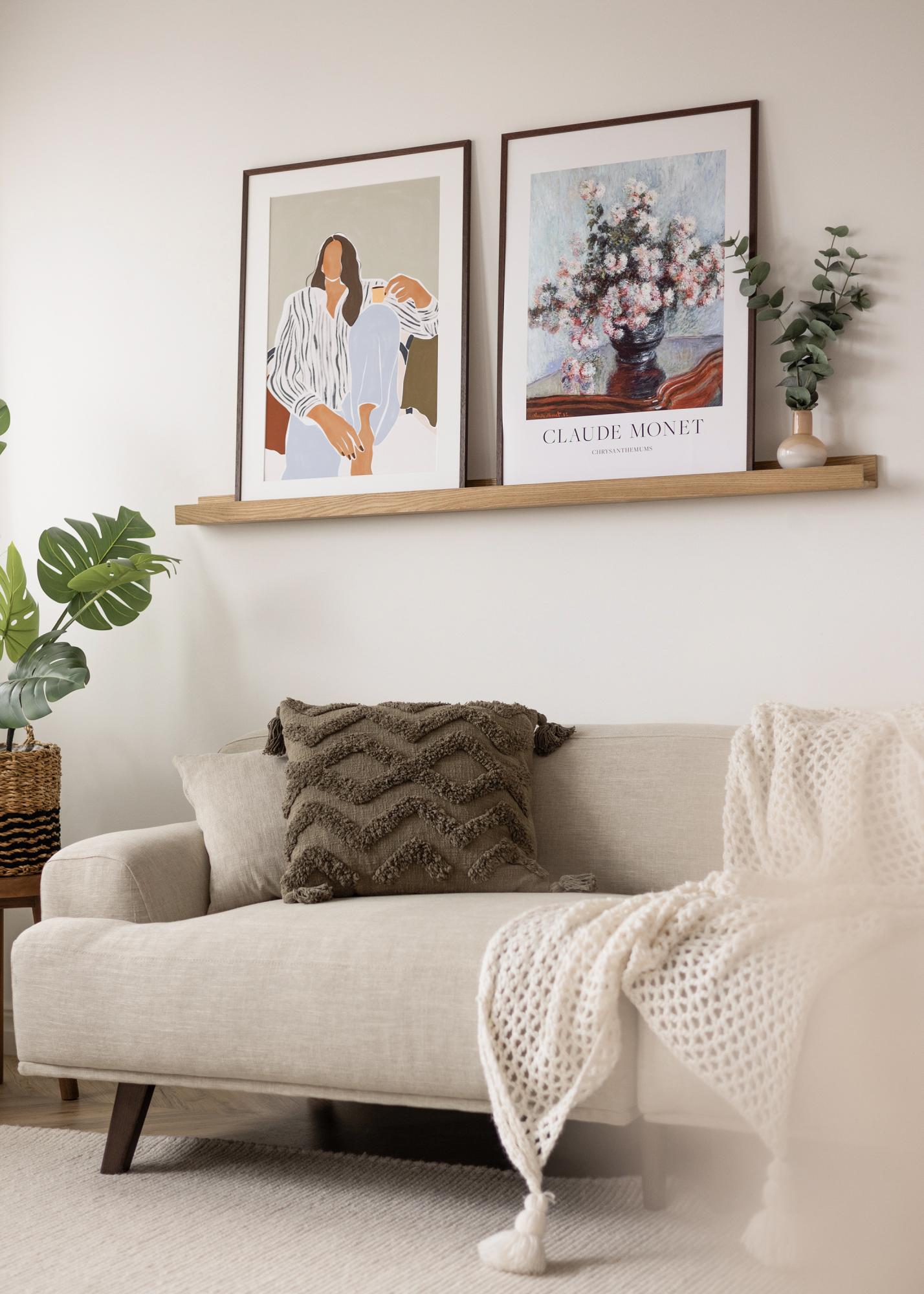 Met een praktische kaderplank toon je je kaders op een elegante manier en krijg je bovendien uitstekende mogelijkheden om je muurkunst te variëren. Dit kaderplank is gemaakt van massief eiken en heeft een stijlvol ontwerp met eenvoudige, rechte lijnen. De plank zelf heeft een uitgefreesde groef die ondersteuning biedt aan je kaders en ervoor zorgt dat ze een mooie hoek krijgen terwijl ze tegen de muur leunen. De kaderlijst is verkrijgbaar in verschillende lengtes, waarvan Dit variant een lengte heeft van 140 cm. De kaderplank heeft ook voorgestanste gaten, en om het nog wat eenvoudiger te maken worden geschikte schroeven en pluggen meegeleverd.