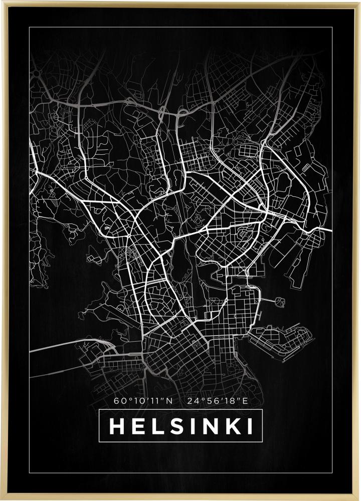 Karta - Helsinki - Svart Poster