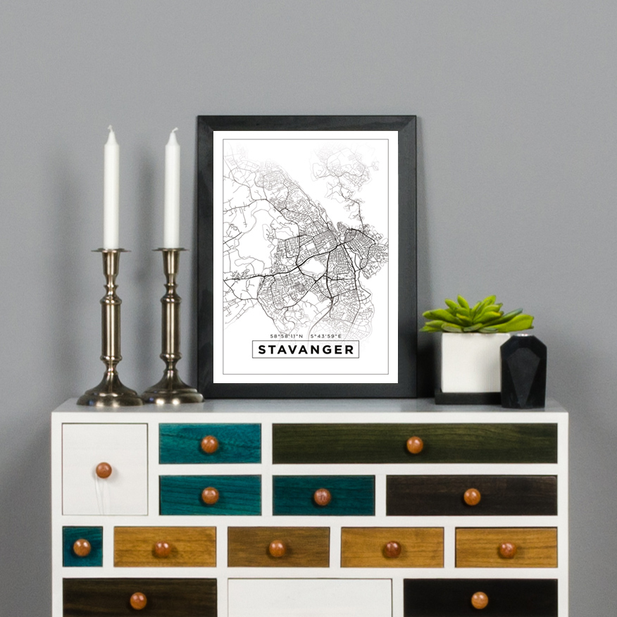Karta - Stavanger - Vit Poster