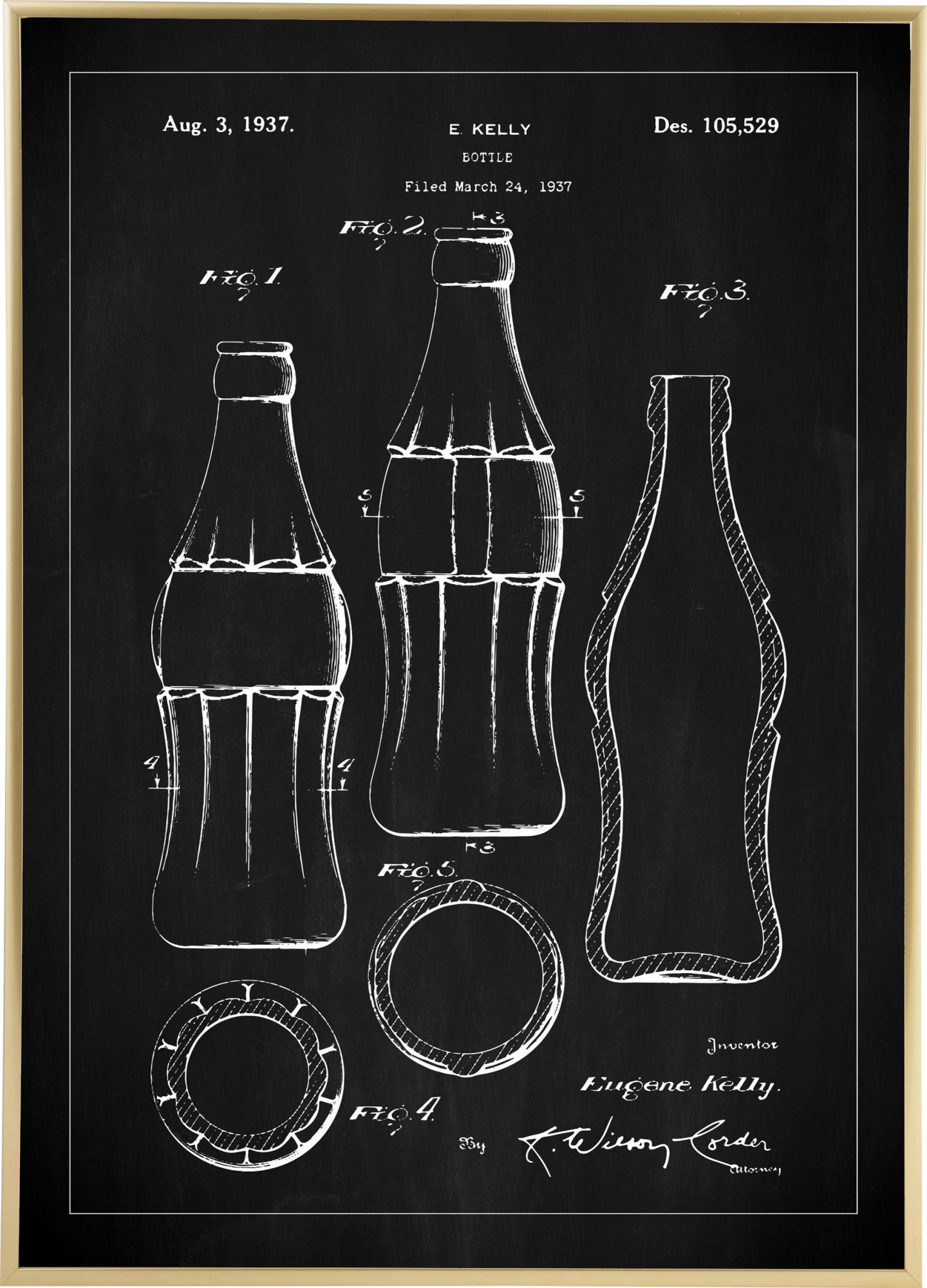 Patentritning - Coca Cola-flaska - Svart Poster
