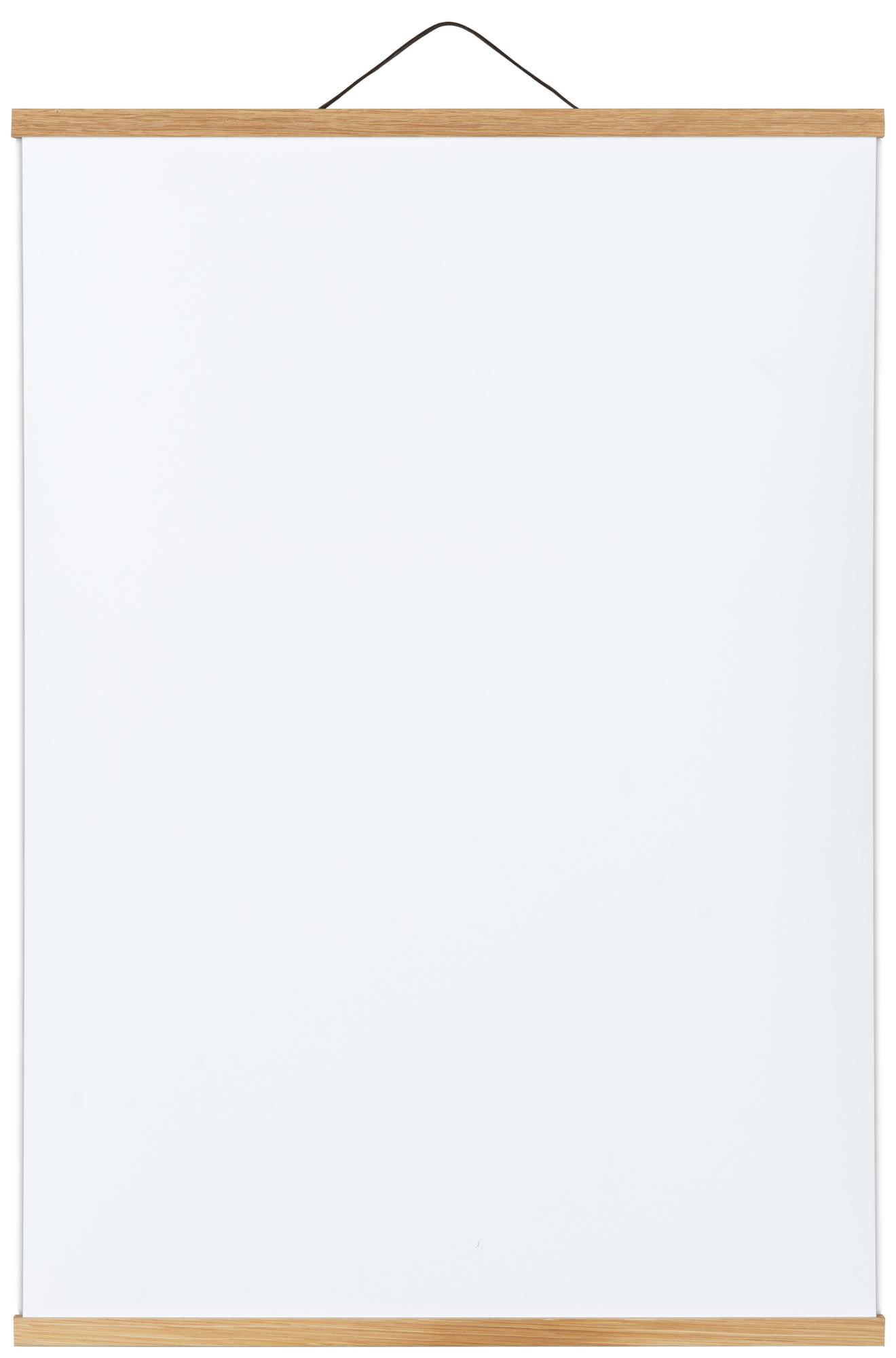Je kunt je poster eenvoudig tussen de twee lijsten van de posterhanger monteren met behulp van de bijbehorende magneten.