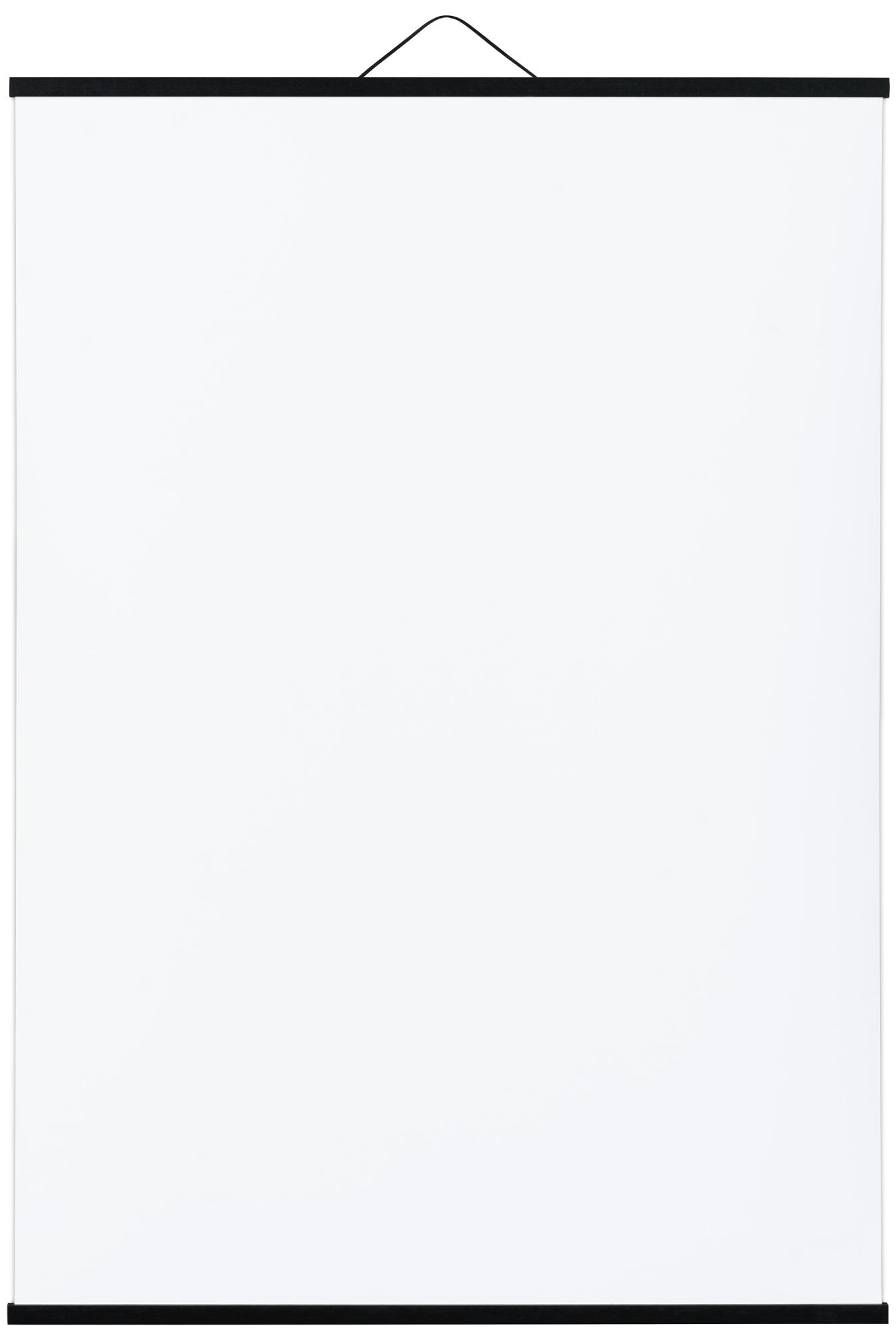 Je kunt je poster eenvoudig tussen de twee lijsten van de posterhanger monteren met behulp van de bijbehorende magneten.