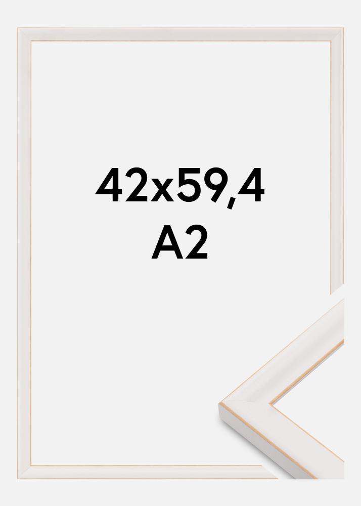Dit elegante fotokader in een zachte, roomwitte tint met een dunne goudrand is een perfecte combinatie van klassiek en modern design. Met een kadergrootte van 42x59,4 cm (A2) is het ideaal om kunstwerken, foto's of herinneringen op een tijdloze manier te benadrukken. Het subtiele goudaccent langs de binnenrand geeft een exclusief gevoel dat je beelden op een verfijnde manier inkadert.