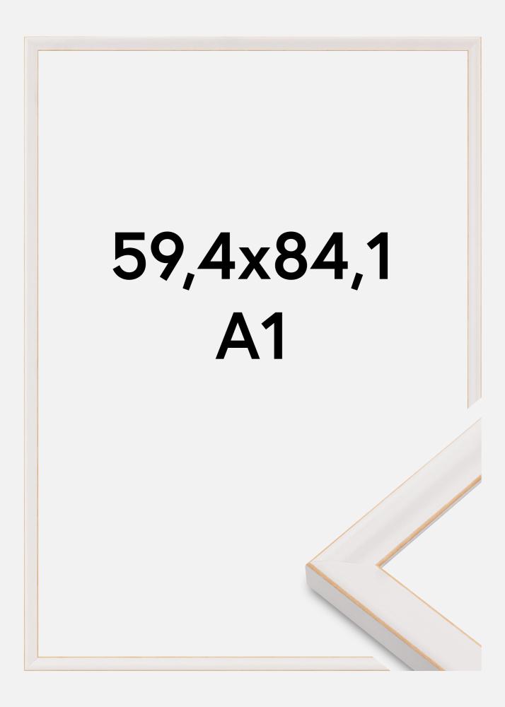 Met zijn afmeting van 59,4 x 84 cm en het stijlvolle ontwerp, is Dit witte kader met gouden rand een uitstekende keuze om je beelden de aandacht te geven die ze verdienen. Of je nu een kunstwerk of een dierbare herinnering wilt tonen, Dit fotokader zal dat met elegantie en finesse doen.