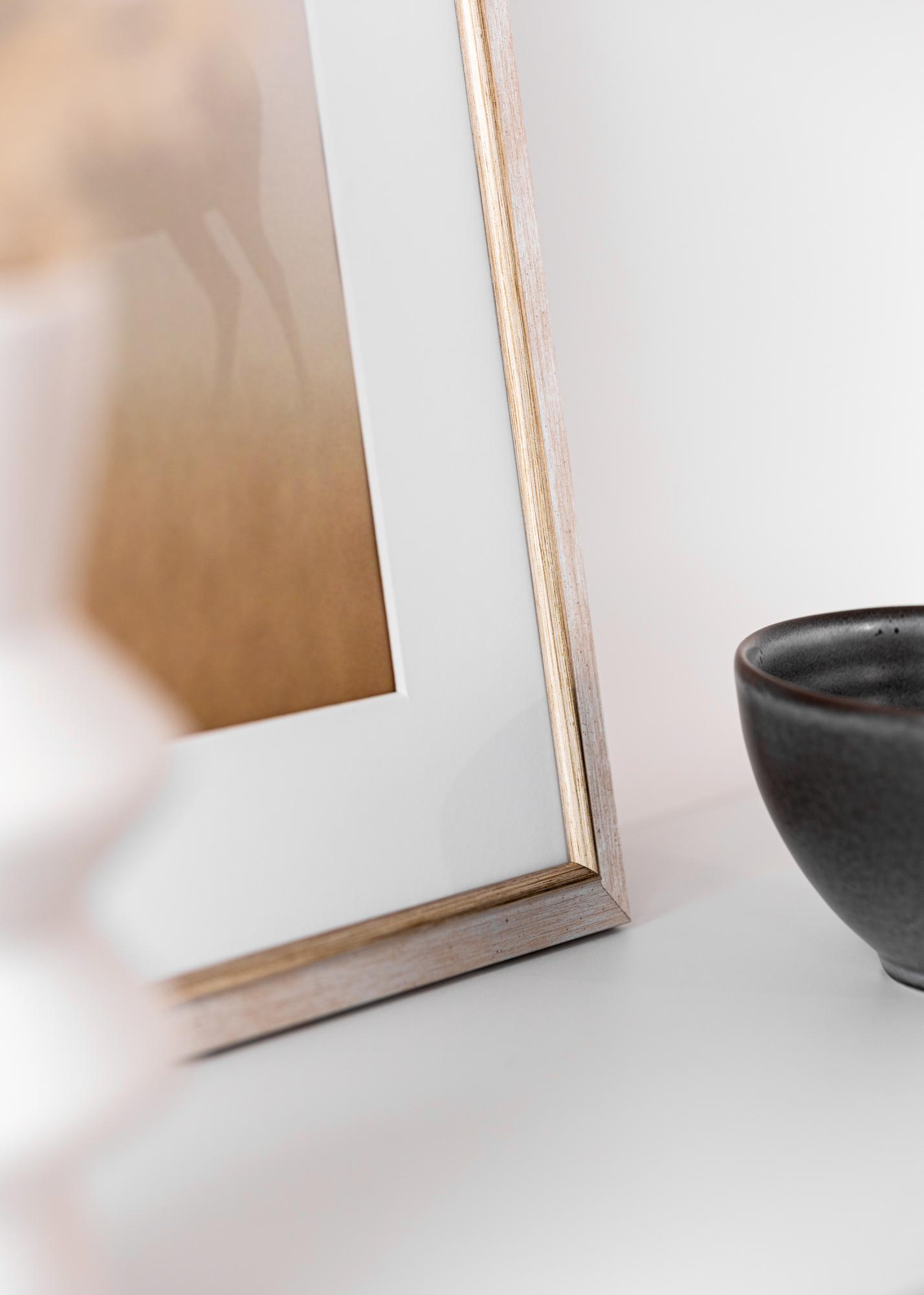 De kader is gemaakt van hout en heeft een 19 mm brede kaderlijst en een diepte van 15 mm, wat een robuuste en stabiele omlijsting biedt. Hij is uitgerust met metalen ophanghaken aan de achterkant, waardoor het eenvoudig is om de kader zowel horizontaal als verticaal op te hangen, afhankelijk van wat het beste past bij je motief.