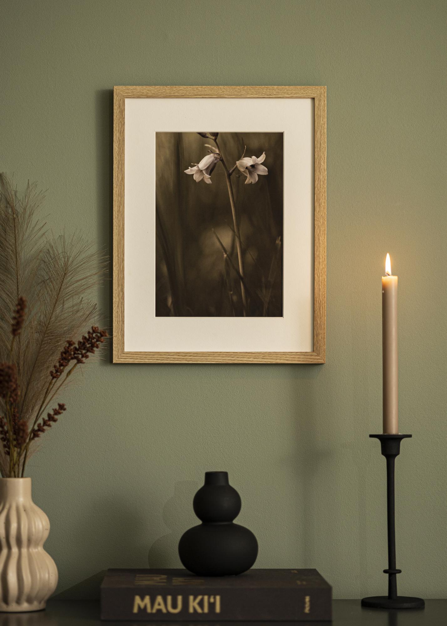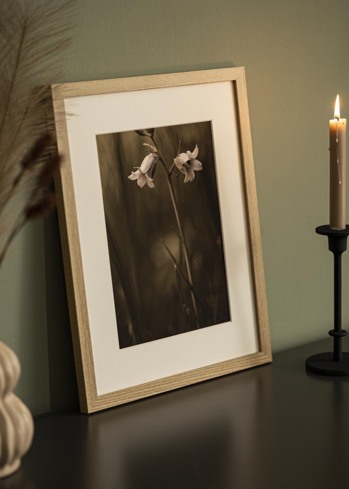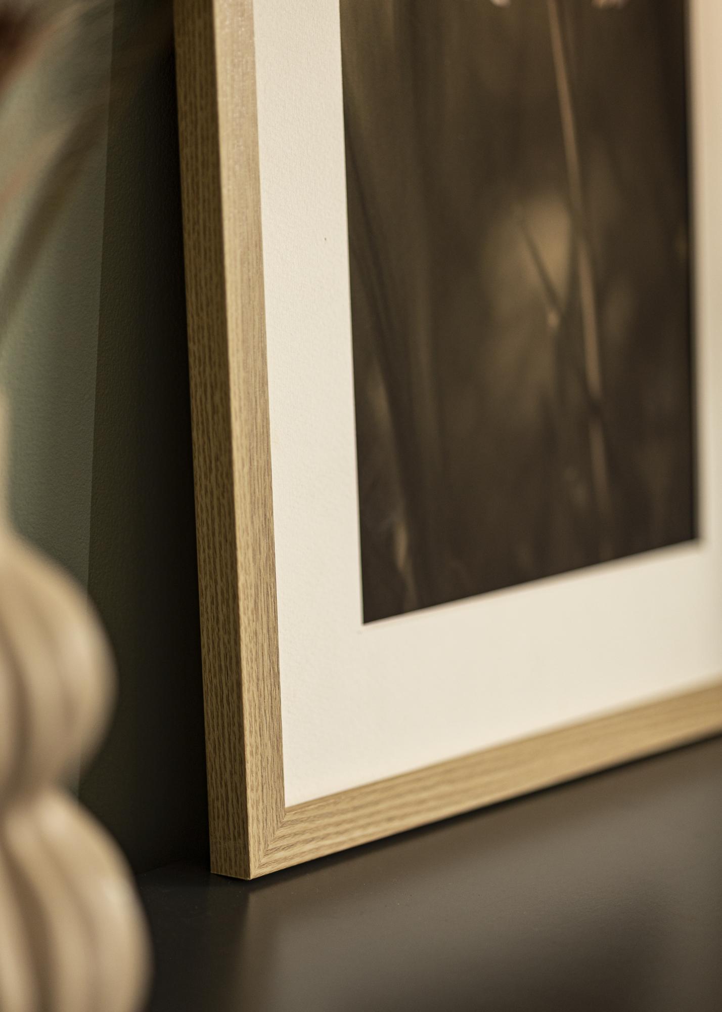 Dit schilderijkader heeft een lijst die 18 mm breed is en een diepte van 18 mm, wat een stabiel en robuust gevoel geeft. De matte afwerking versterkt de natuurlijke schoonheid van de eiken kleur en laat het motief echt tot zijn recht komen. De kader is uitgerust met metalen haken aan de achterkant, waardoor het eenvoudig is om hem zowel horizontaal als verticaal op te hangen, afhankelijk van wat het beste bij je motief past.