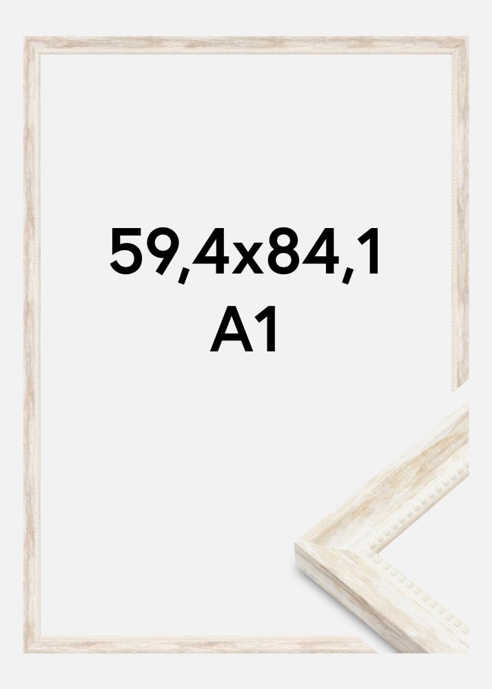 Dit mooie fotokader in de afmeting 59,4x84,1 cm is een perfecte combinatie van rustieke charme en strakke elegantie. Met zijn witte kleur en decoratieve parelrand langs de binnenkant, biedt hij een subtiele antieke uitstraling die zowel kunstwerken als foto's verbetert. Dit schilderkader is gemaakt van hout en heeft een 25 mm brede kaderlijst en een diepte van 19 mm, wat zorgt voor een robuust en stevig gevoel.