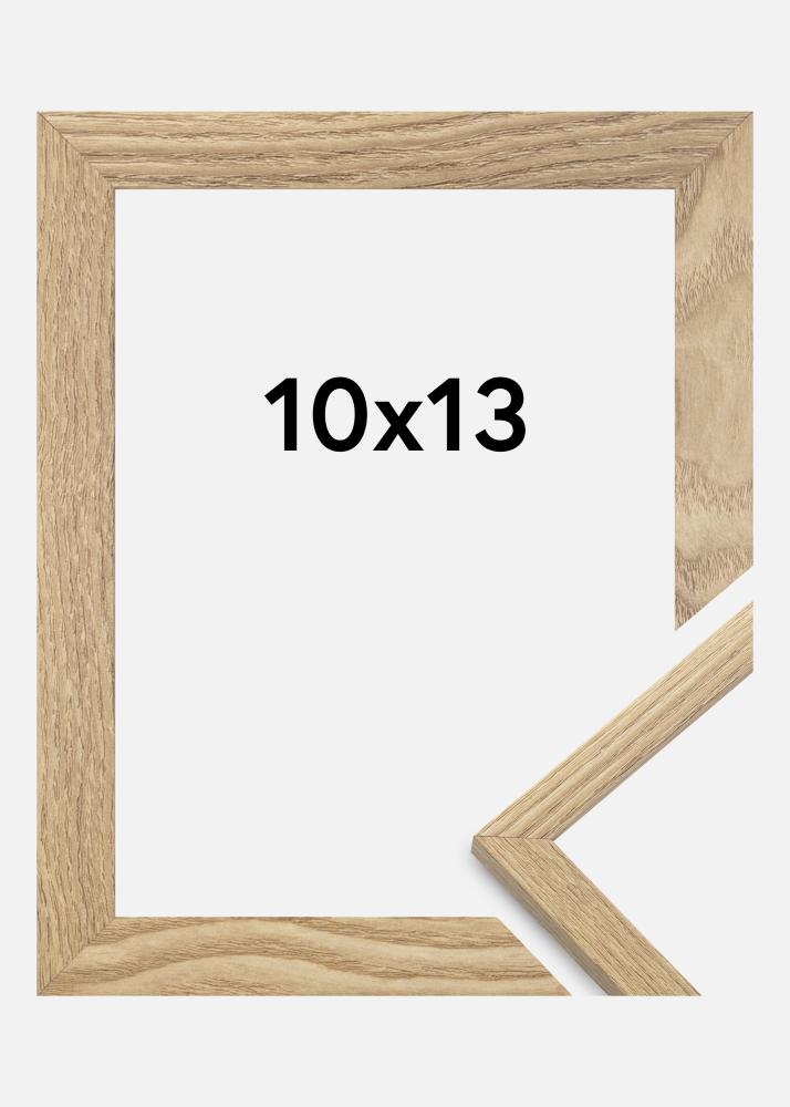 Het fotokader is gemaakt van MDF-materiaal met een fineer van eikenhout en heeft een dun profiel van 14 mm. Er is voldoende ruimte om je afbeeldingen aan te vullen met een luxe passe-partout, dankzij de 12 mm binnendiepte (sponningdiepte) van het fotokader.