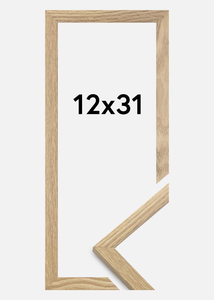 Het fotokader is gemaakt van MDF-materiaal met een fineer van eikenhout en heeft een dun profiel van 14 mm. Er is voldoende ruimte om je afbeeldingen aan te vullen met een luxe passe-partout, dankzij de 12 mm binnendiepte (sponningdiepte) van het fotokader.