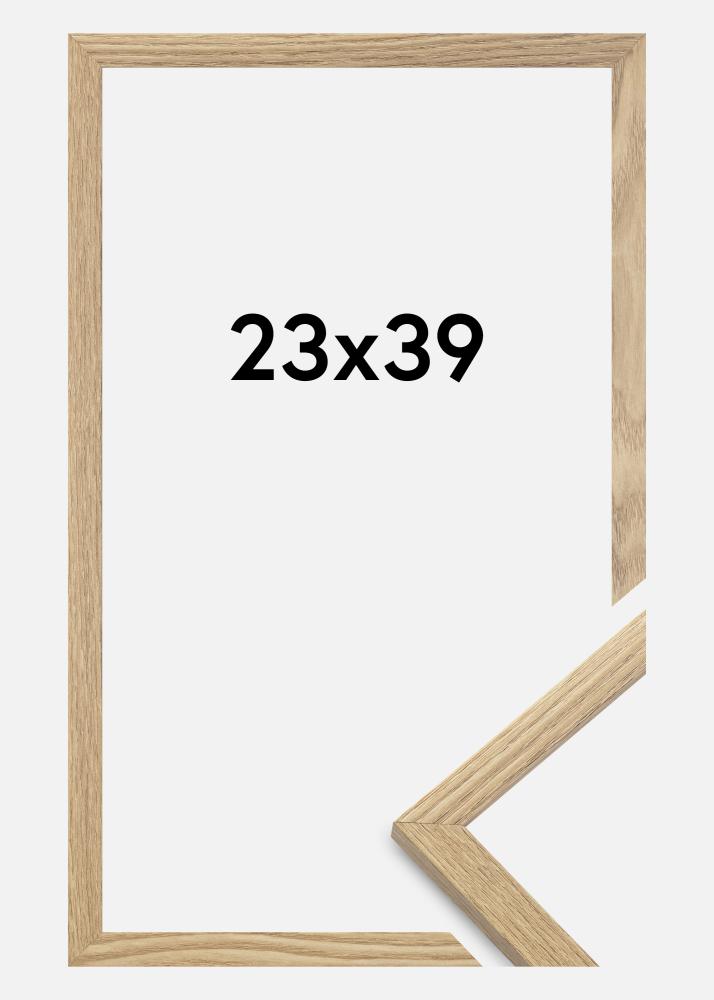 Het fotokader is gemaakt van MDF-materiaal met een fineer van eikenhout en heeft een dun profiel van 14 mm. Er is voldoende ruimte om je afbeeldingen aan te vullen met een luxe passe-partout, dankzij de 12 mm binnendiepte (sponningdiepte) van het fotokader.