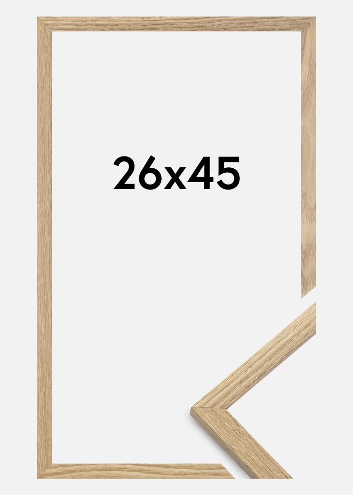 Het fotokader is gemaakt van MDF-materiaal met een fineer van eikenhout en heeft een dun profiel van 14 mm. Er is voldoende ruimte om je afbeeldingen aan te vullen met een luxe passe-partout, dankzij de 12 mm binnendiepte (sponningdiepte) van het fotokader.