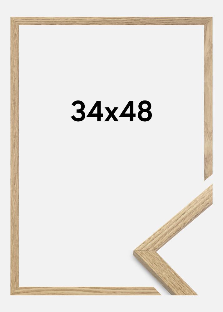 Het fotokader is gemaakt van MDF-materiaal met een fineer van eikenhout en heeft een dun profiel van 14 mm. Er is voldoende ruimte om je afbeeldingen aan te vullen met een luxe passe-partout, dankzij de 12 mm binnendiepte (sponningdiepte) van het fotokader.