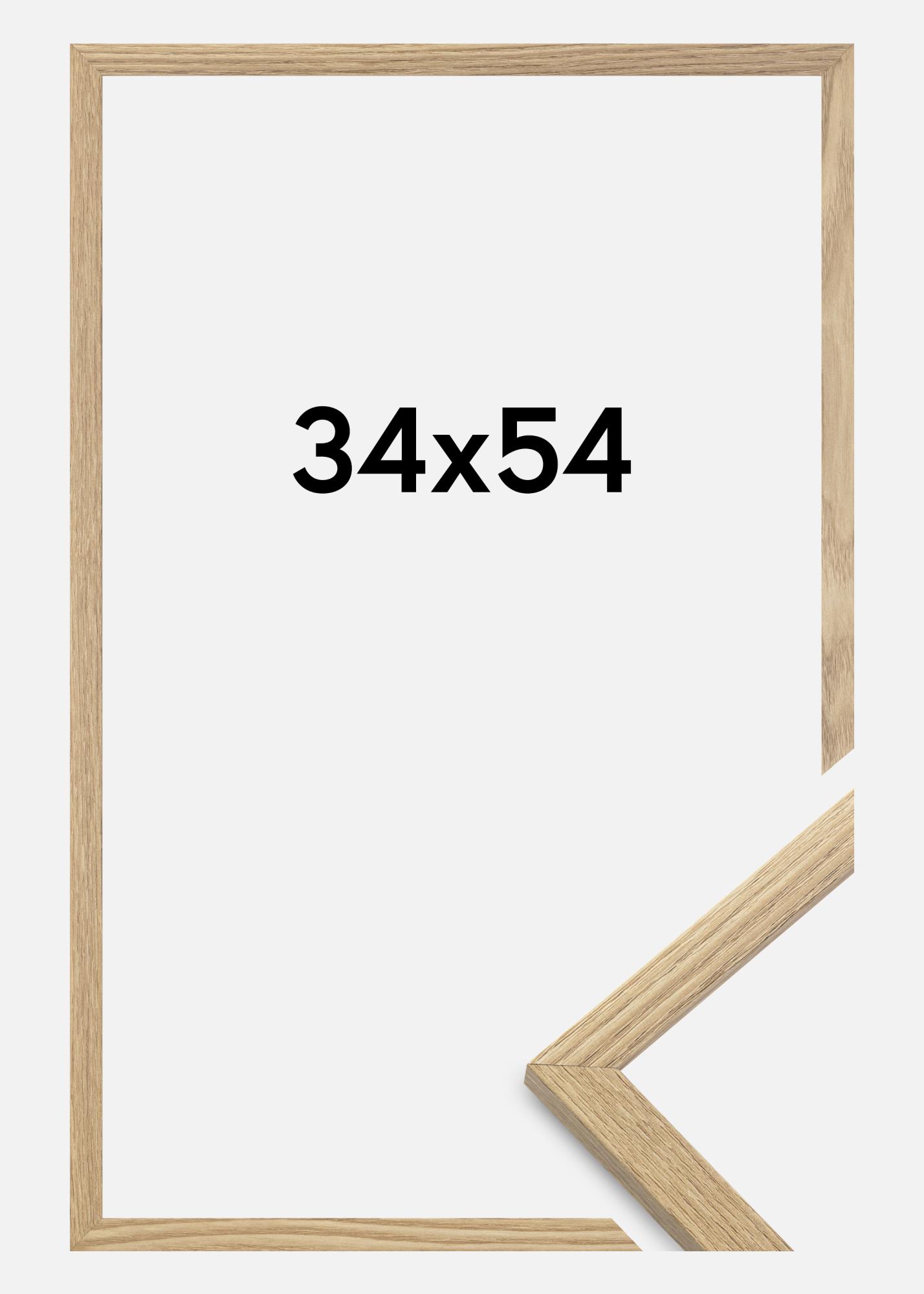 Het fotokader is gemaakt van MDF-materiaal met een fineer van eikenhout en heeft een dun profiel van 14 mm. Er is voldoende ruimte om je afbeeldingen aan te vullen met een luxe passe-partout, dankzij de 12 mm binnendiepte (sponningdiepte) van het fotokader.