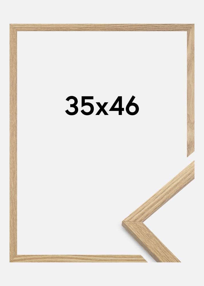 Het fotokader is gemaakt van MDF-materiaal met een fineer van eikenhout en heeft een dun profiel van 14 mm. Er is voldoende ruimte om je afbeeldingen aan te vullen met een luxe passe-partout, dankzij de 12 mm binnendiepte (sponningdiepte) van het fotokader.