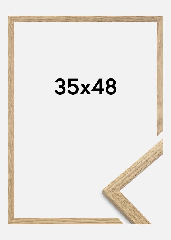 Het fotokader is gemaakt van MDF-materiaal met een fineer van eikenhout en heeft een dun profiel van 14 mm. Er is voldoende ruimte om je afbeeldingen aan te vullen met een luxe passe-partout, dankzij de 12 mm binnendiepte (sponningdiepte) van het fotokader.