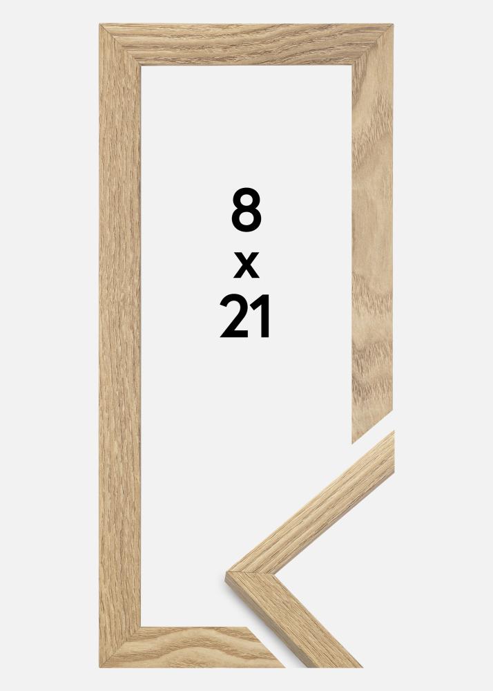 Het fotokader is gemaakt van MDF-materiaal met een fineer van eikenhout en heeft een dun profiel van 14 mm. Er is voldoende ruimte om je afbeeldingen aan te vullen met een luxe passe-partout, dankzij de 12 mm binnendiepte (sponningdiepte) van het fotokader.