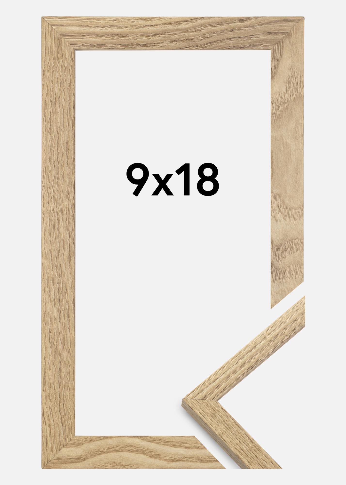 Het fotokader is gemaakt van MDF-materiaal met een fineer van eikenhout en heeft een dun profiel van 14 mm. Er is voldoende ruimte om je afbeeldingen aan te vullen met een luxe passe-partout, dankzij de 12 mm binnendiepte (sponningdiepte) van het fotokader.