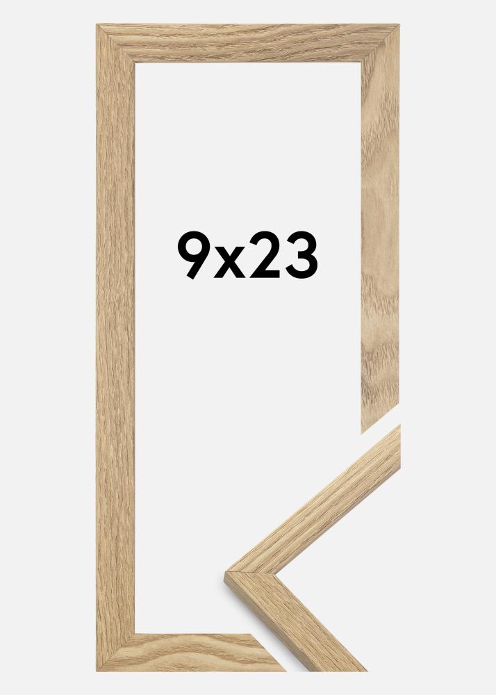 Het fotokader is gemaakt van MDF-materiaal met een fineer van eikenhout en heeft een dun profiel van 14 mm. Er is voldoende ruimte om je afbeeldingen aan te vullen met een luxe passe-partout, dankzij de 12 mm binnendiepte (sponningdiepte) van het fotokader.