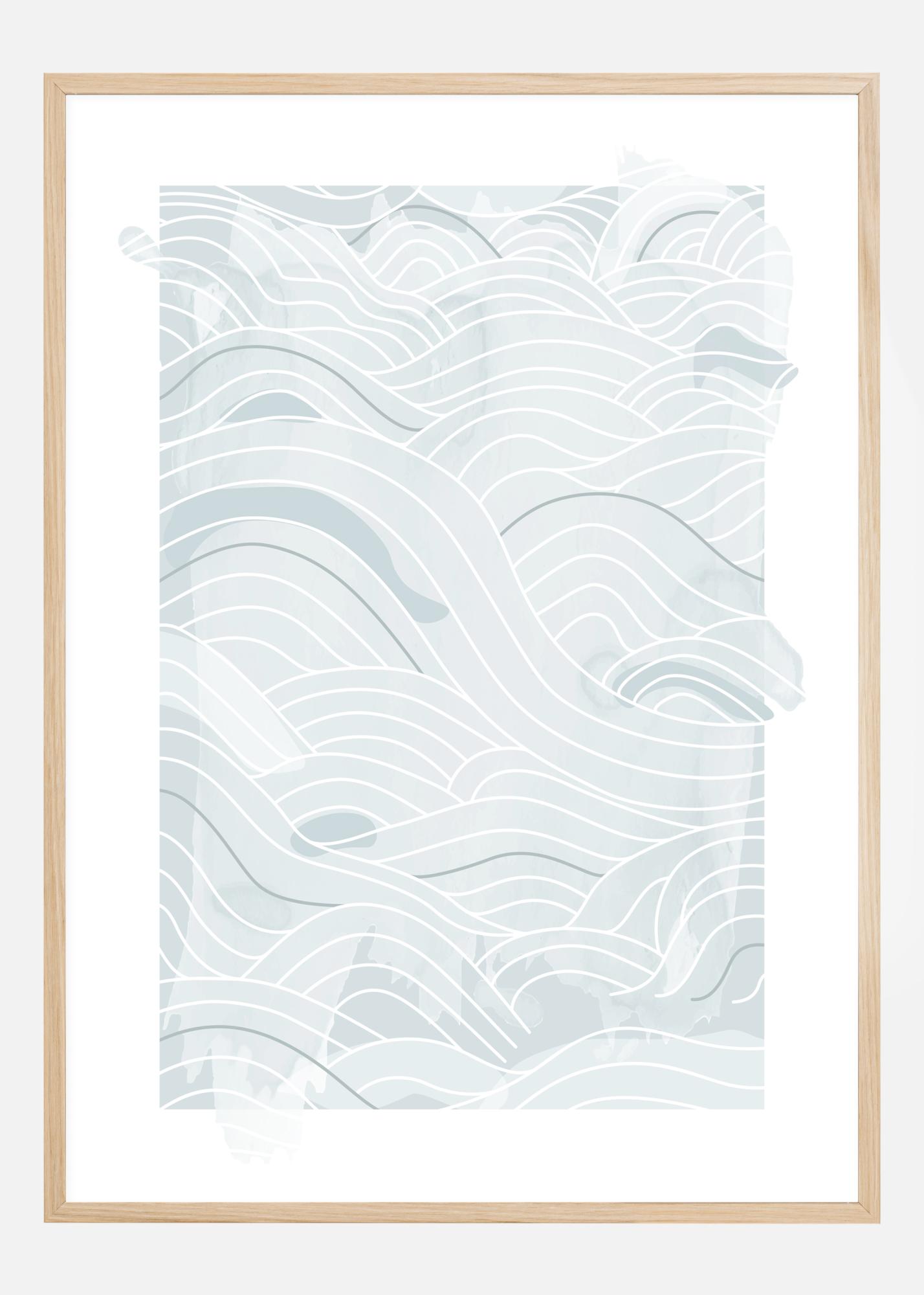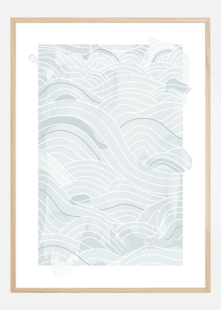 Een oceaan poster met zachtblauwe abstracte lijnen en golven op een witte achtergrond. Verschillende tinten blauw en verschillende lijndiktes maken samen deze golvende golven over de poster. Verdwaal in gedachten en laat je meeslepen door dit zachte oceaan ontwerp.